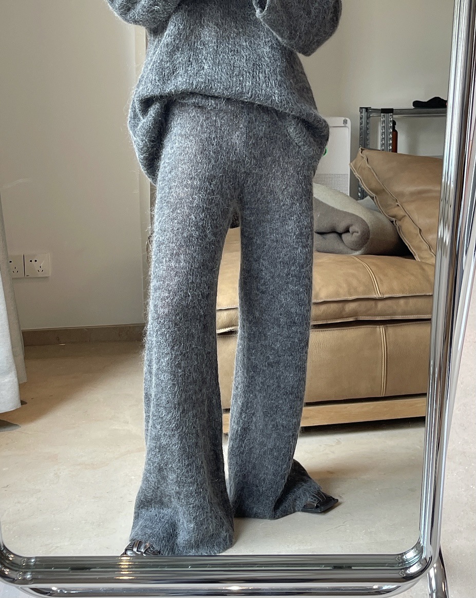 봄 새로운 한국 스타일 게으른 미스티 모헤어 니트 캐주얼 바지 느슨한 슬리밍 하이 웨이스트 와이드 레그 여성용 후행 바지스토어 가기