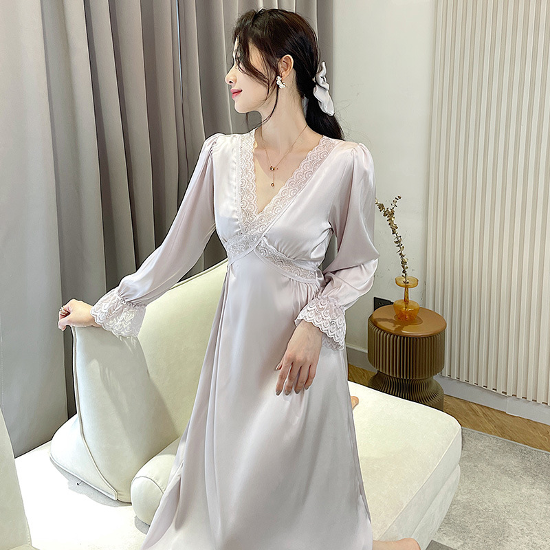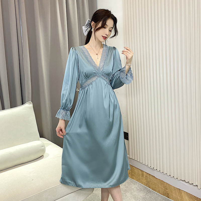 봄과 여름 얇은 긴 소매 탄성 높은 허리 잠옷 섹시 우아한 여성의 홈 의류 제조 업체 재고스토어 가기