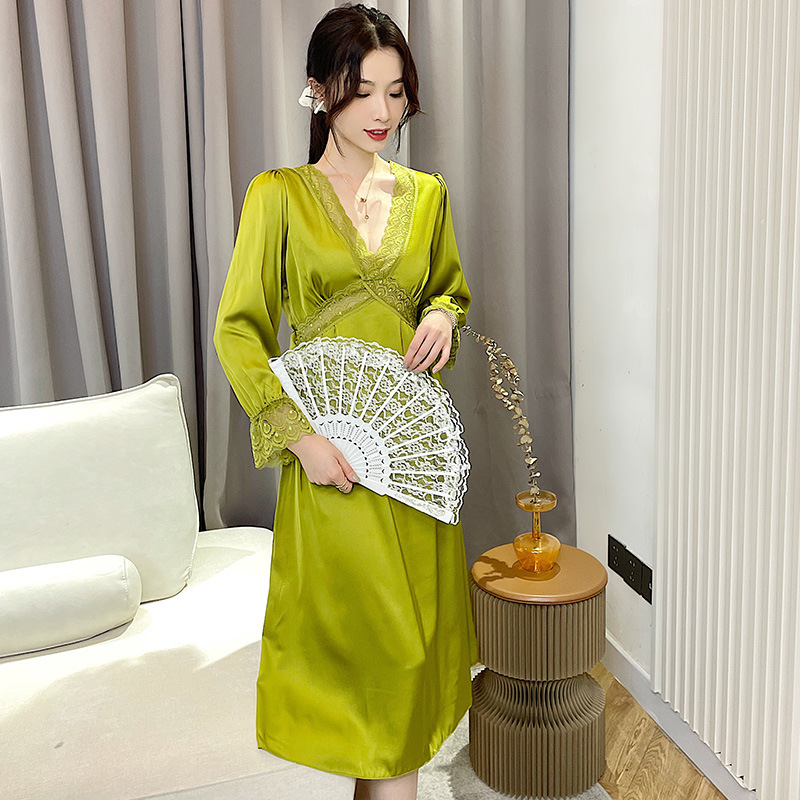 봄과 여름 얇은 긴 소매 탄성 높은 허리 잠옷 섹시 우아한 여성의 홈 의류 제조 업체 재고