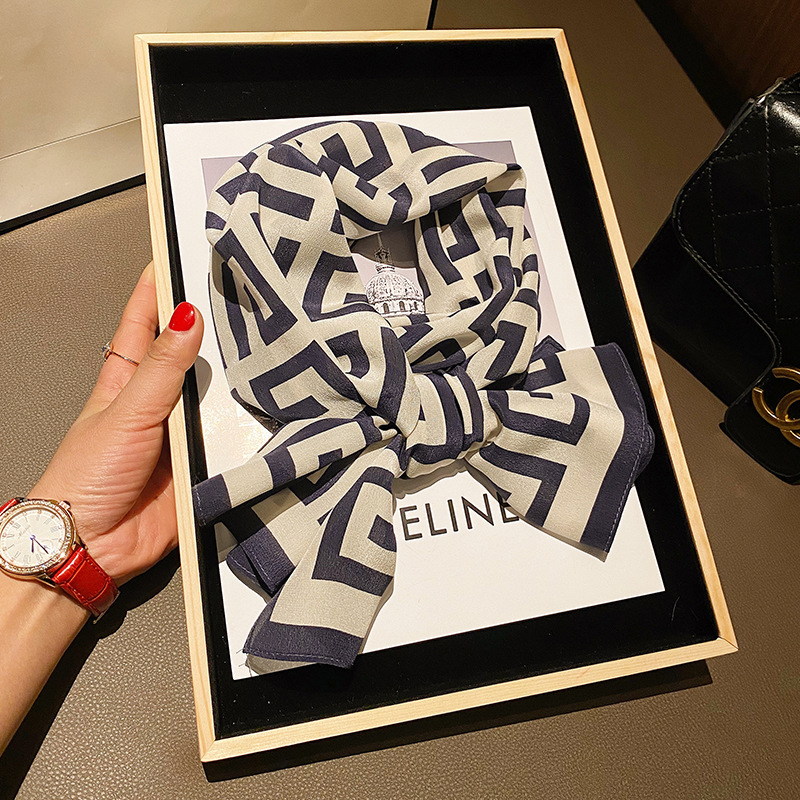 패션 카페 가장자리 뒤 패턴 실크 긴 스카프 봄과 여름 신선한 간단한 스타일 100% 뽕나무 실크 스카프 스카프스토어 가기