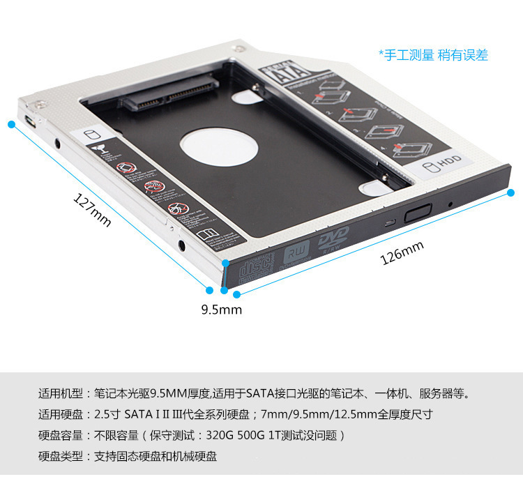 HDD 캐디 모든 알루미늄 하드 드라이브 캐리어 12.7/9.5 노트북 기계식 sata3SSD 솔리드 스테이트 드라이브 브래킷