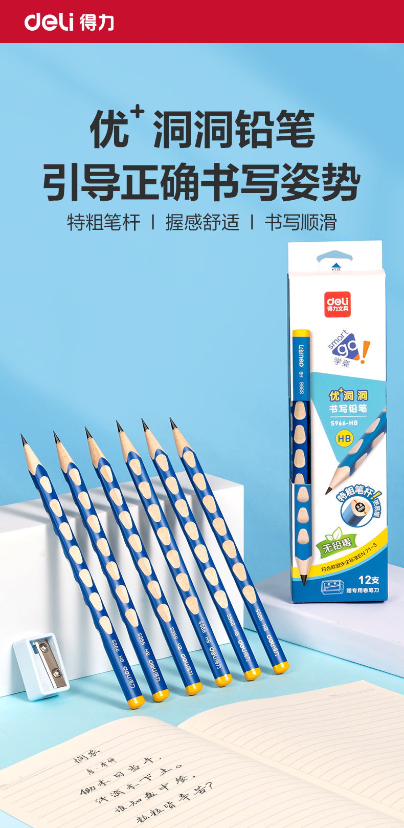 델리 우량 + 홀 펜슬 볼드 12 색 박스 2B HB 어린이 자세 베이스우드 펜슬 문구 도매