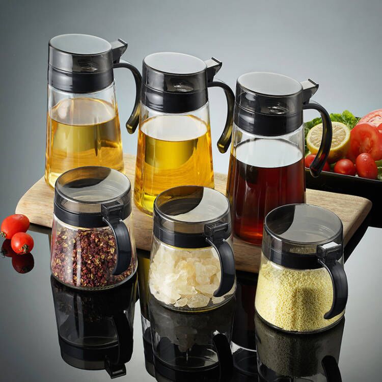 Xinmeiya 전체 플라스틱 조미료 상자 세트 가정용 조합 주방 유리 조미료 항아리 소금 MSG 조미료 병