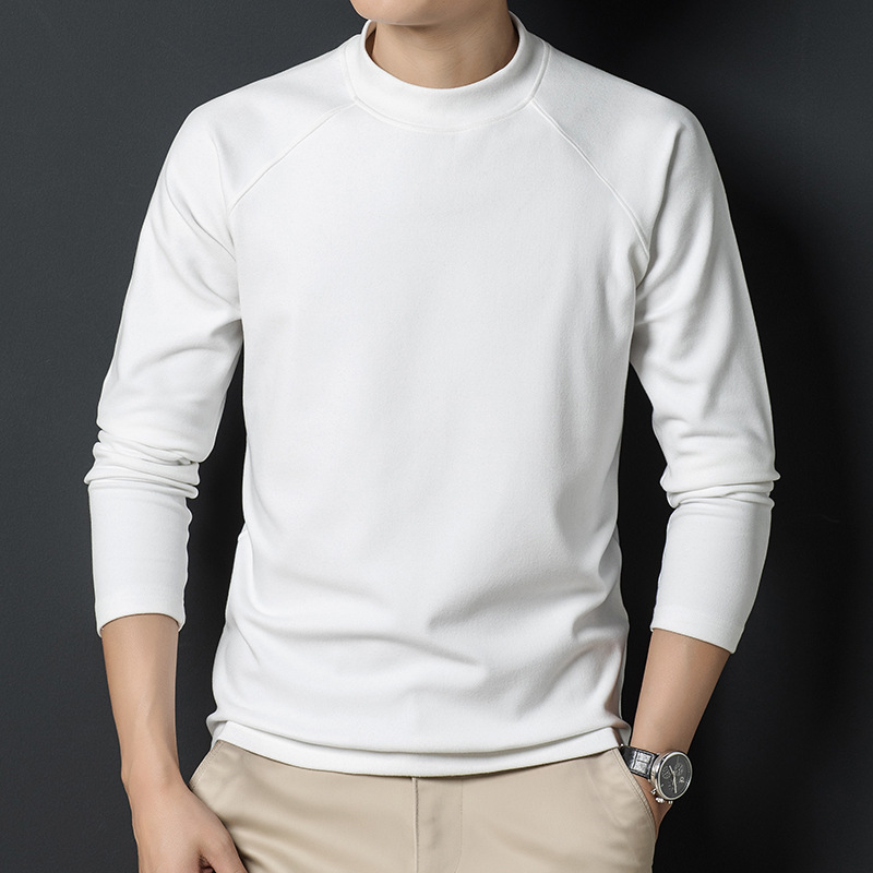 양면 벨벳 가을과 겨울 따뜻한 세미 하이 칼라 바닥 셔츠 남성용 벨벳 솔질 기모 두꺼운 내부 긴팔 티셔츠