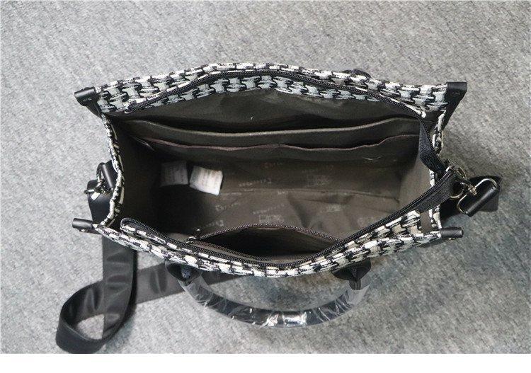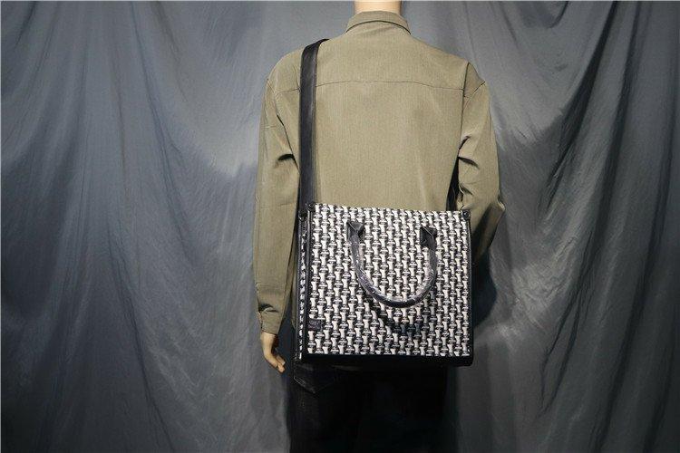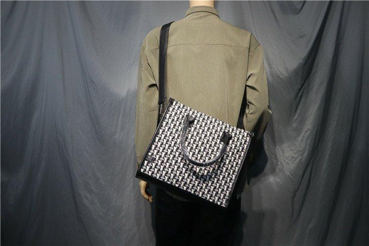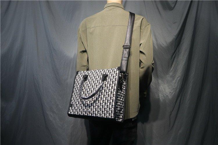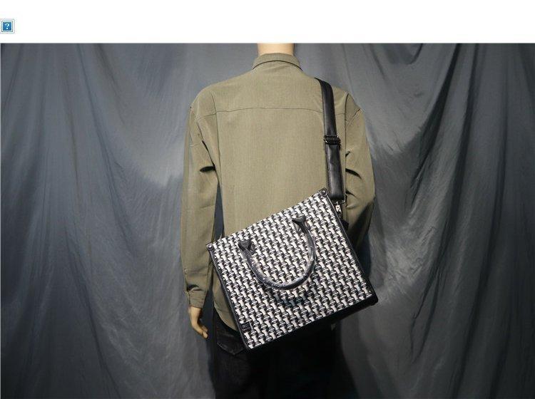 Threebox 청소년 유행 남성 Houndstooth 핸드백 캐주얼 남성용 흑백 격자 무늬 숄더백 손 서류 가방