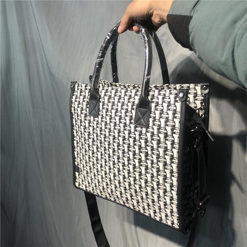 Threebox 청소년 유행 남성 Houndstooth 핸드백 캐주얼 남성용 흑백 격자 무늬 숄더백 손 서류 가방스토어 가기