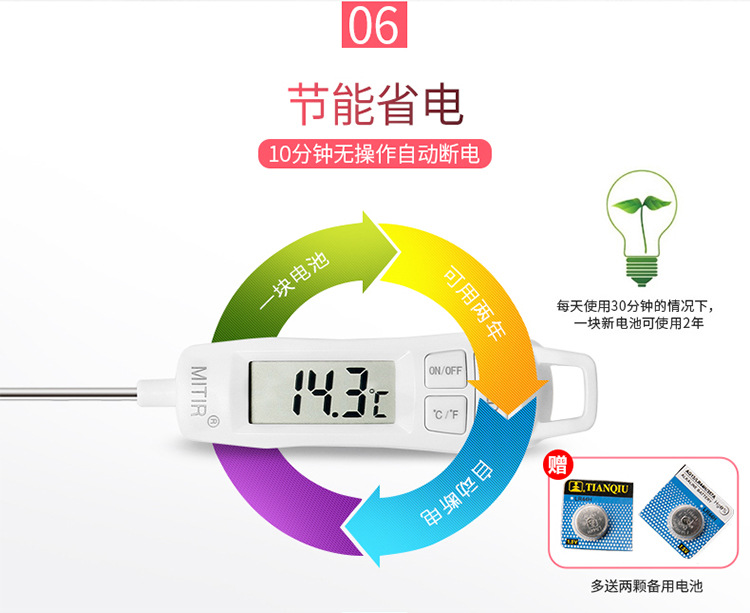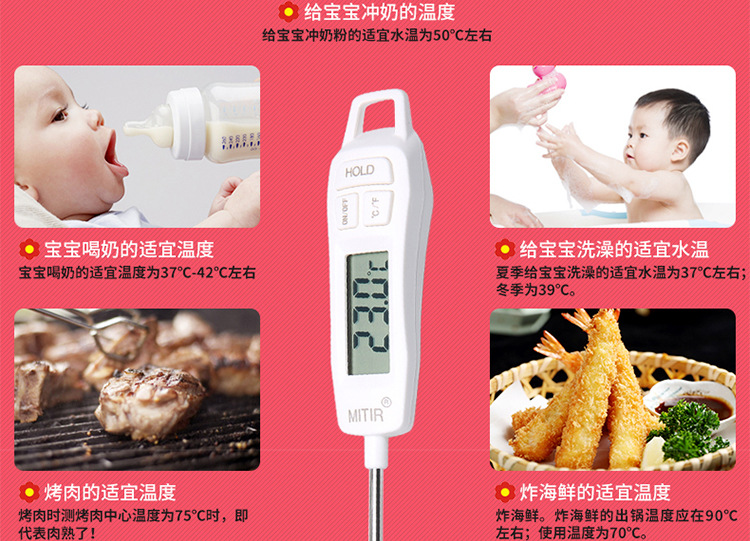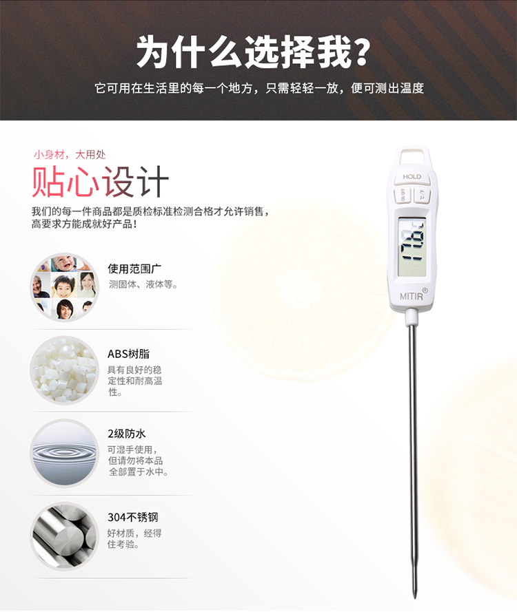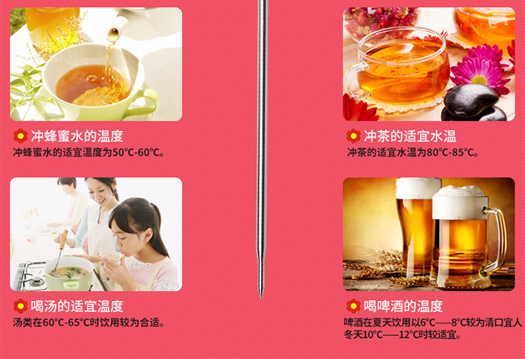 3. 适用范围广:可用于测量各种食品、液体、固体等的温度,满足不同场景的需求。