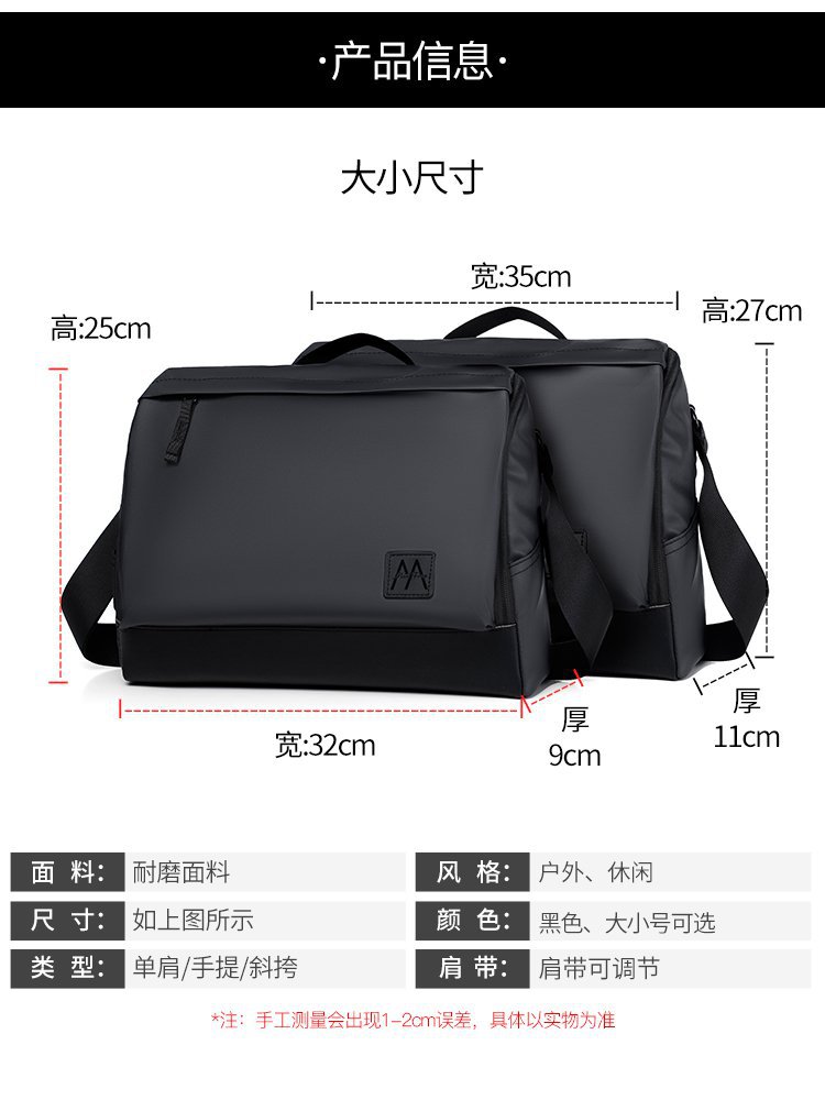 남자 가방 새로운 단색 나일론 숄더 백 남자의 한국 스타일 캐주얼 크로스 바디 백 비즈니스 노트북 서류 가방