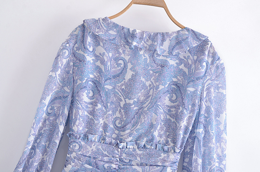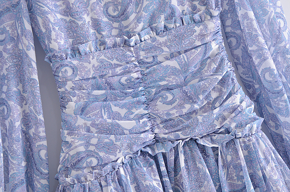 2025 유럽과 미국 스타일의 여성의 새로운 꽃무늬 허리띠 디자인 긴팔 드레스 6751스토어 가기