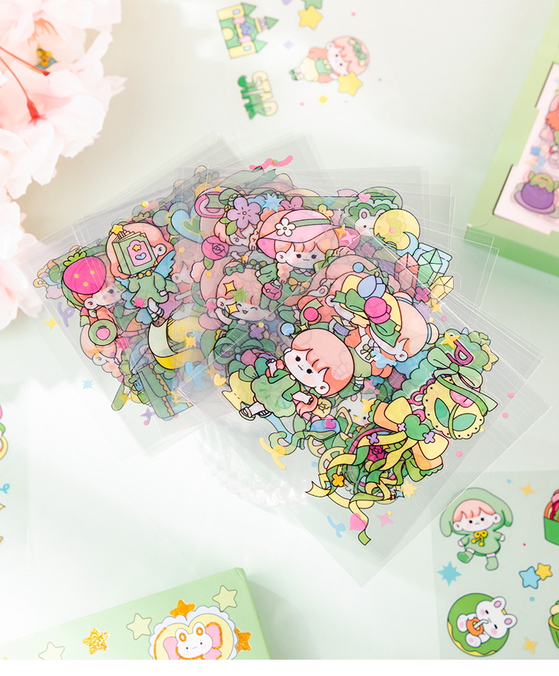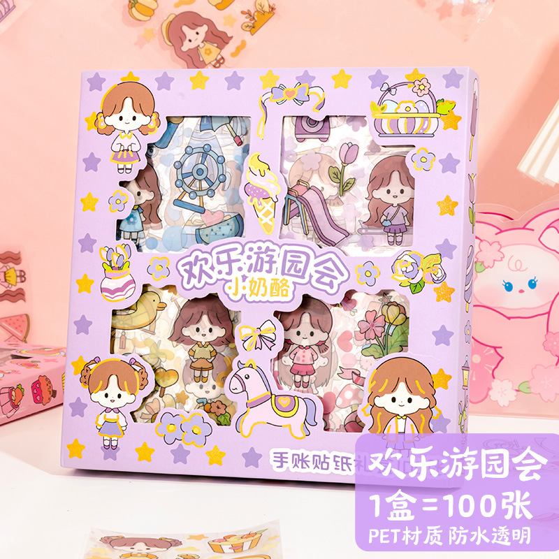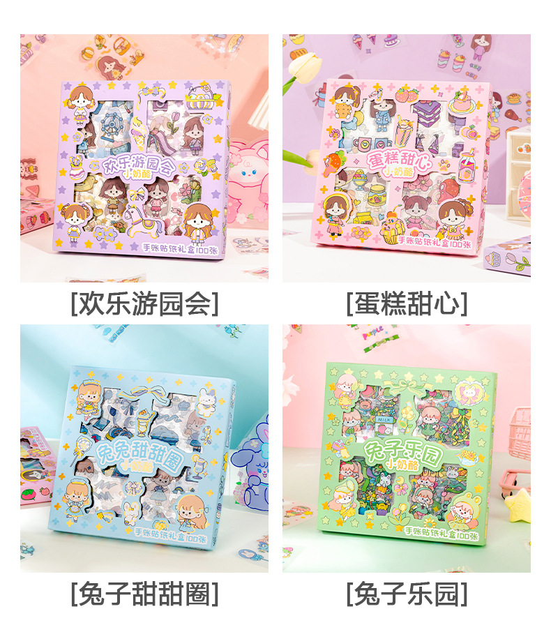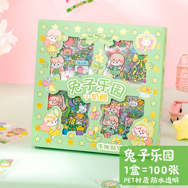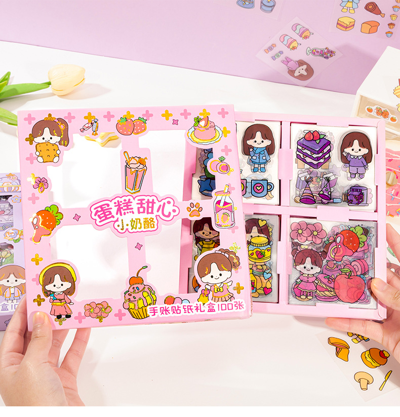 100 손 계정 스티커 세트 투명 만화 방수 원활한 손 계정 스티커 소녀 심장 DIY 장식 문구 스티커