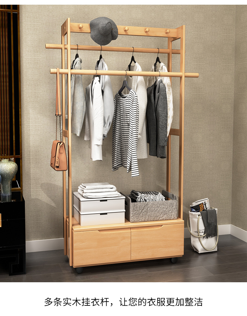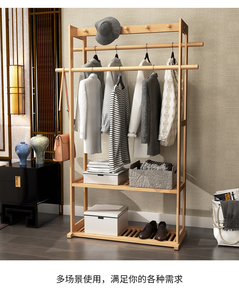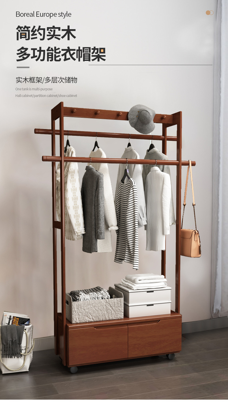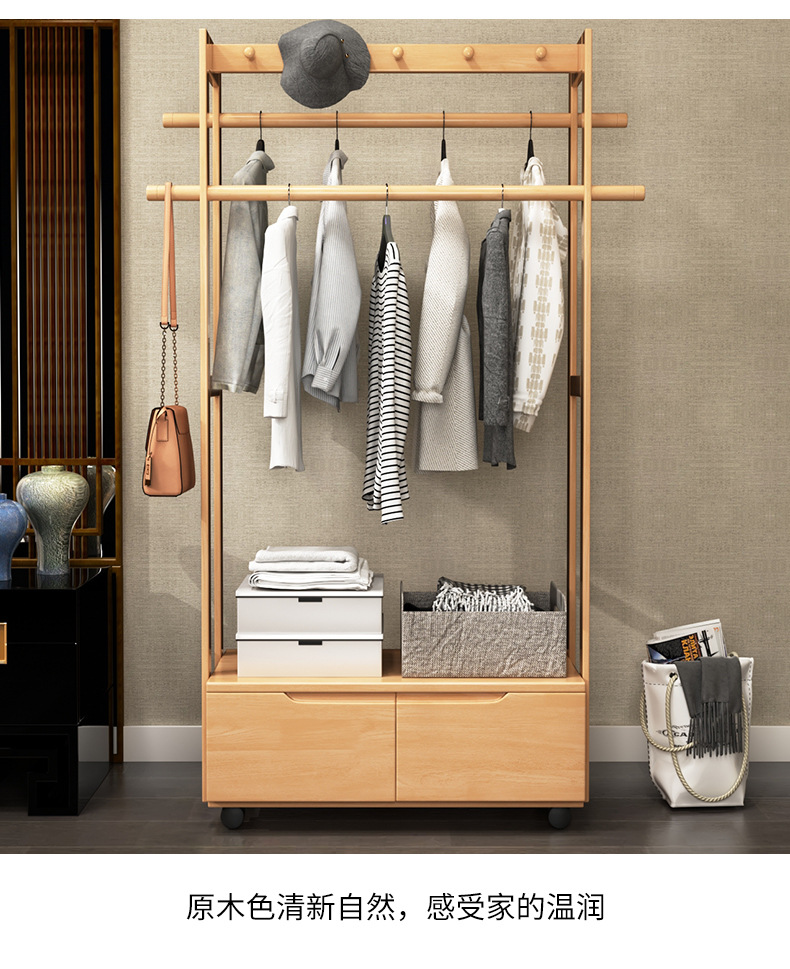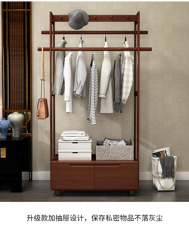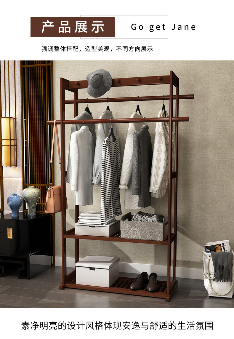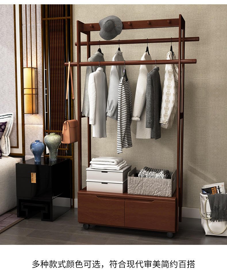 코트 랙 바닥 단단한 나무 침실 걸이 북유럽 거실 옷 랙 새로운 중국 스타일 간단한 현대 보관 캐비닛스토어 가기