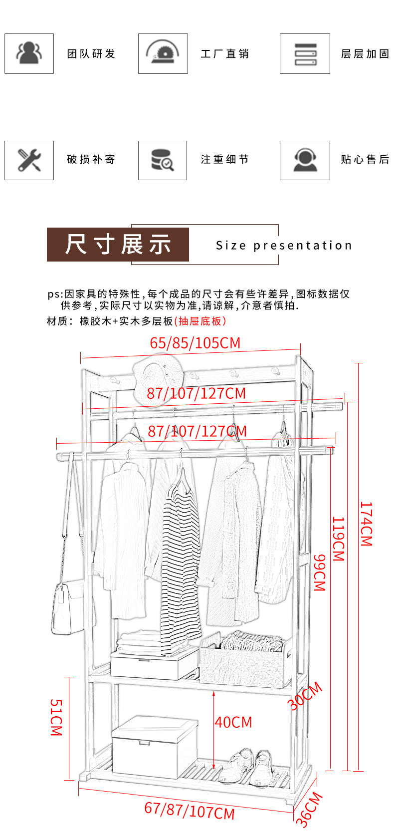 • 업그레이드된 로그 컬러 코트 랙 65cm