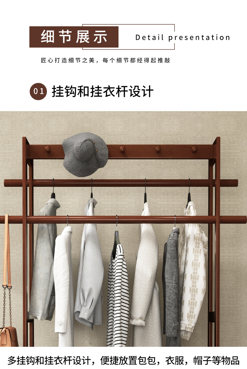 코트 랙 바닥 단단한 나무 침실 걸이 북유럽 거실 옷 랙 새로운 중국 스타일 간단한 현대 보관 캐비닛