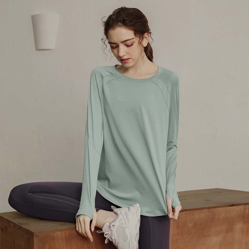 느슨한 속건 스포츠 탑 여성용 긴팔 티셔츠 요가 의류 통기성 러닝 피트니스 의류 슬리밍 피트니스 의류스토어 가기
