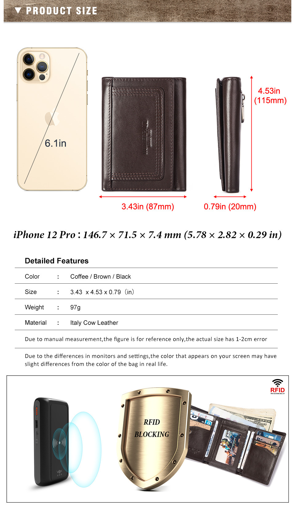 Hummer Paul RFID 멀티 카드 슬롯 남성용 동전 지갑 1층 소가죽 남성용 지퍼 백 가죽 멀티 컬러 지갑 크로스보더스토어 가기