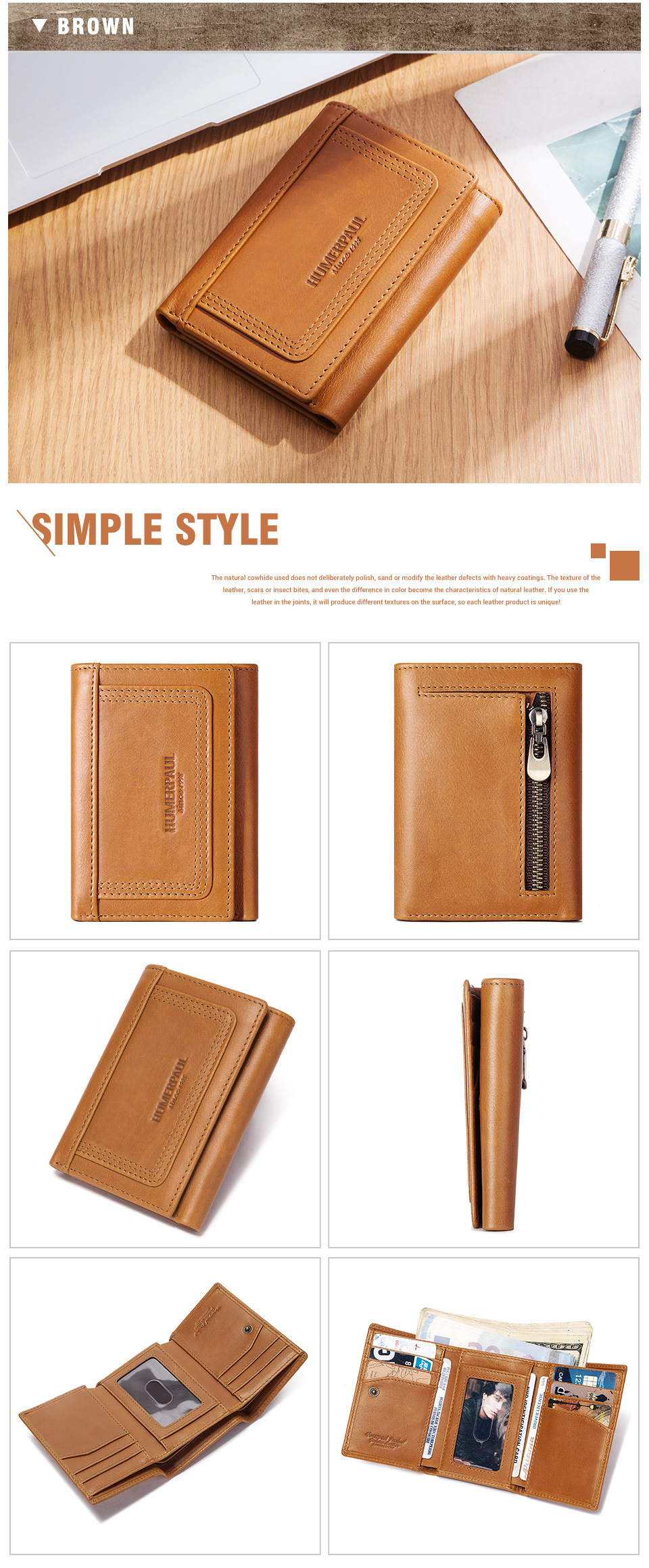 Hummer Paul RFID 멀티 카드 슬롯 남성용 동전 지갑 1층 소가죽 남성용 지퍼 백 가죽 멀티 컬러 지갑 크로스보더