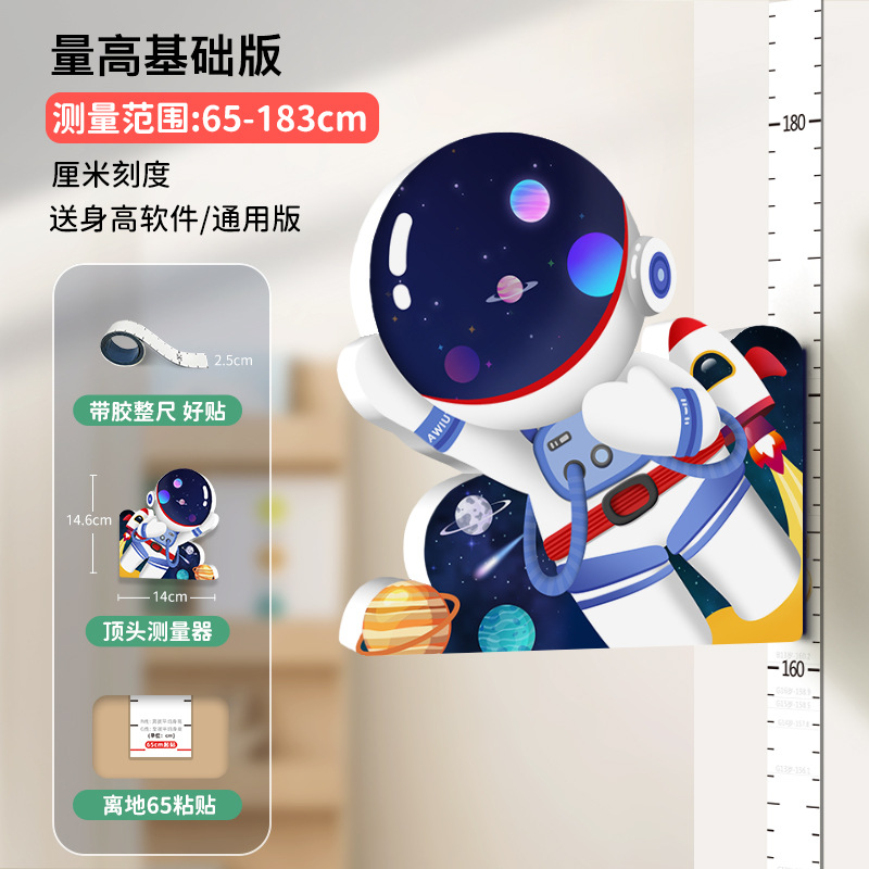우주 비행사 어린이 높이 벽 스티커 3D 스테레오 아기 높이 스티커 자기 만화 이동식 기록 측정스토어 가기
