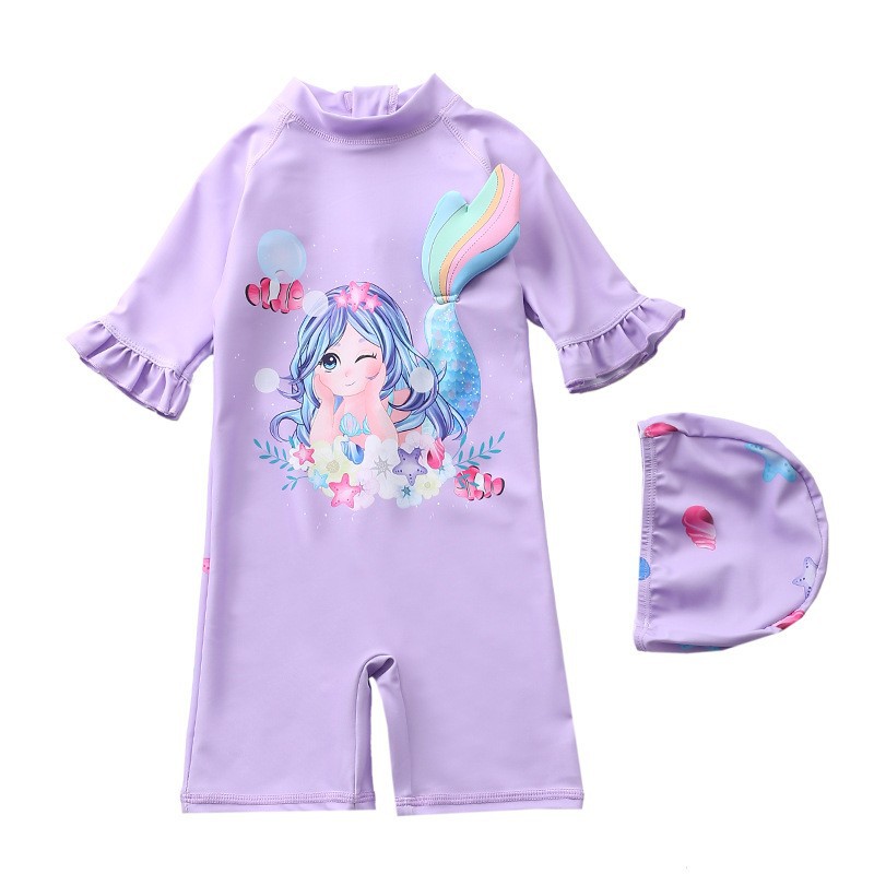 새로운 어린이 수영복 소녀 원피스 수영복 아기 공주 소녀 연잎 대형, 중형 및 소형 소녀 수영복