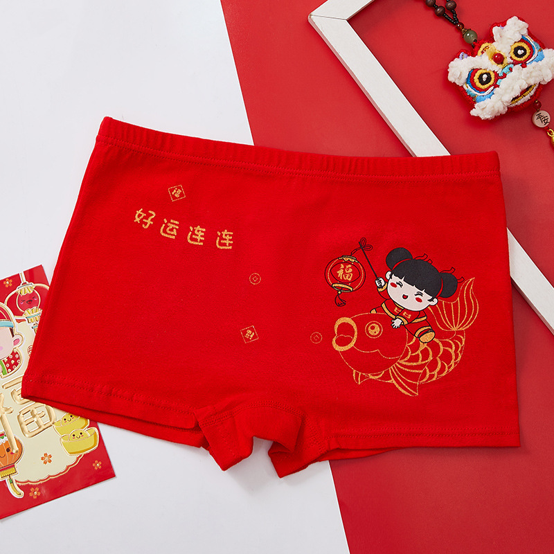 Bermingnian 속옷 소년과 소녀 큰 빨간 복서 여아 속옷 순면 내부 복서 반바지