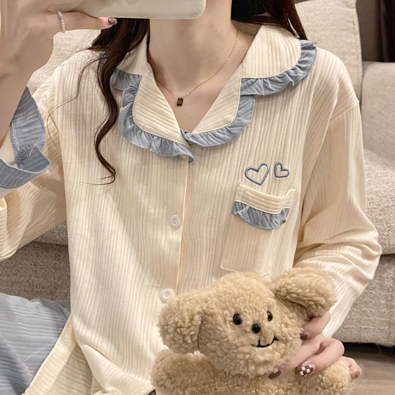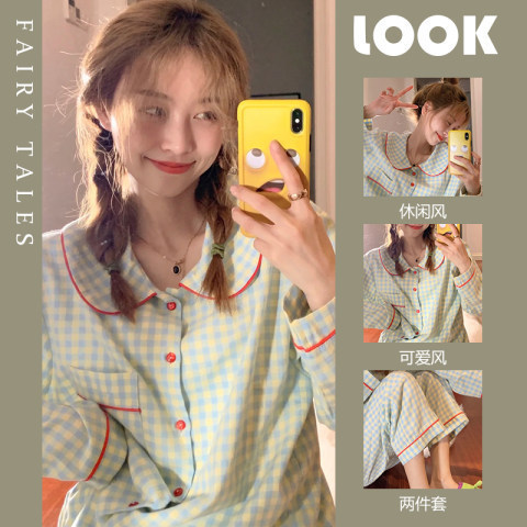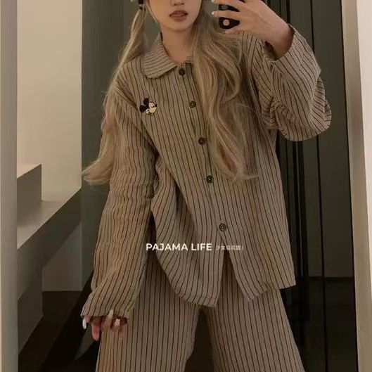 새로운 잠옷 여성 Ins 곰 귀여운 달콤한 일본 만화 봄 여성 홈 옷 마이크로 비즈니스 세트 잠옷