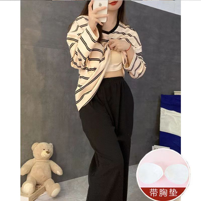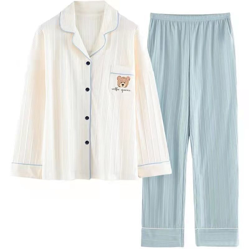 새로운 잠옷 여성 Ins 곰 귀여운 달콤한 일본 만화 봄 여성 홈 옷 마이크로 비즈니스 세트 잠옷스토어 가기
