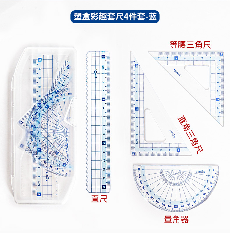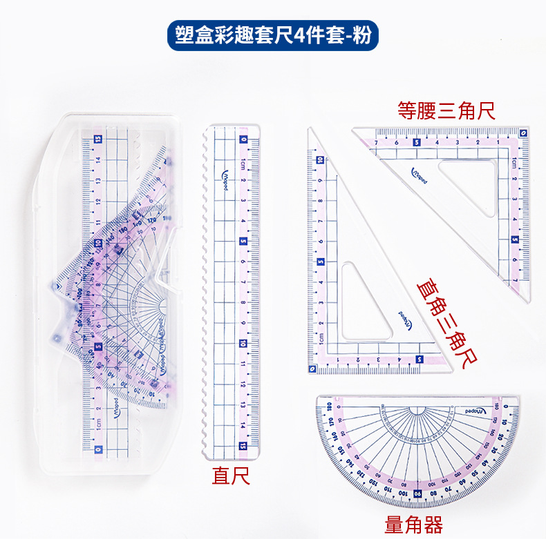 Ma Peide 컬러 재미 세트 4 종 세트 초등학생 15cm 투명 자 웨이브 라인 각도기 삼각형 플레이트 세트스토어 가기