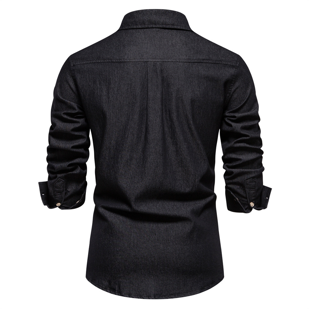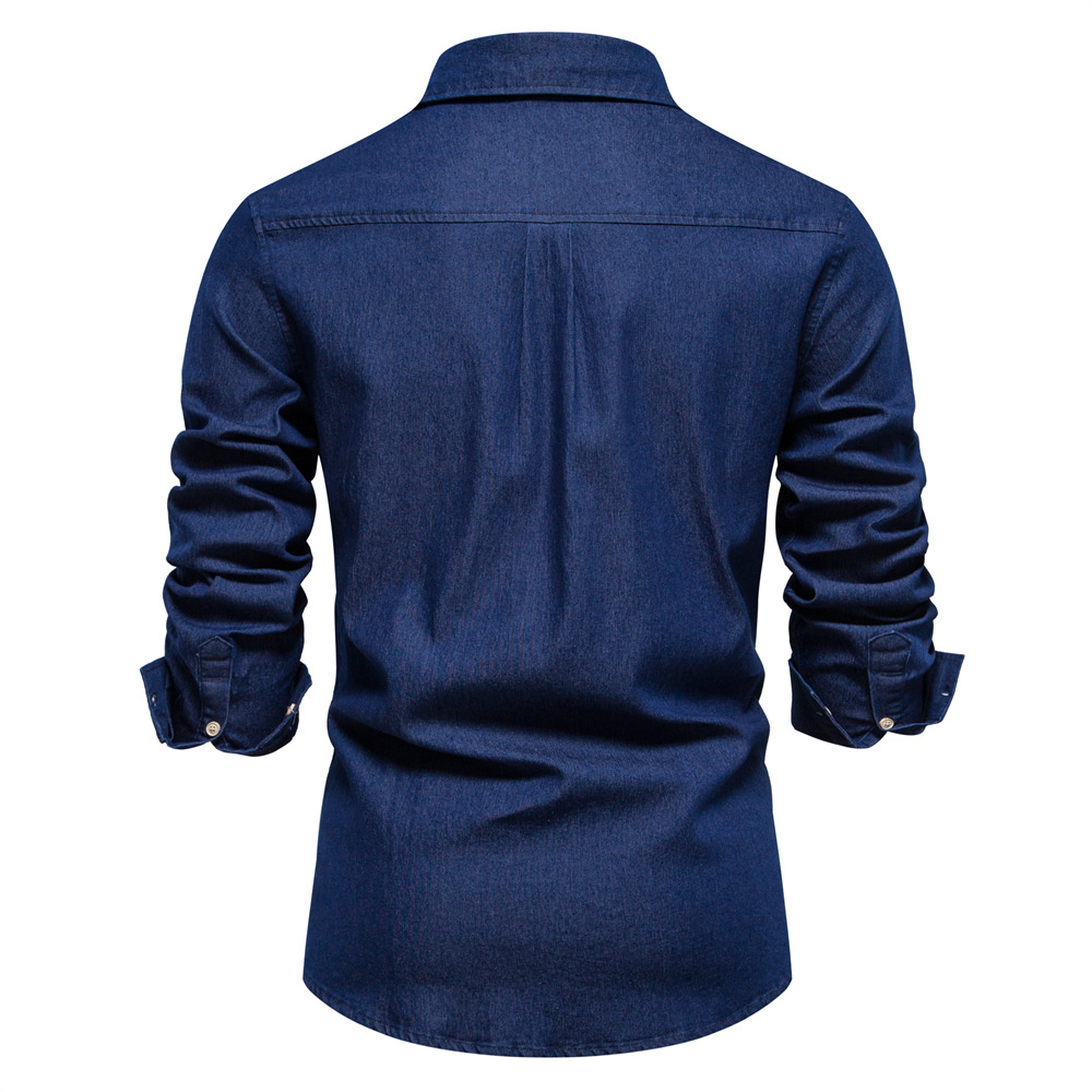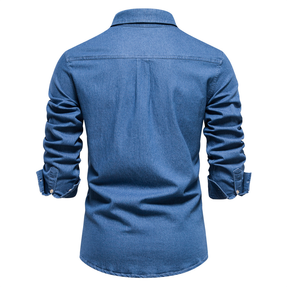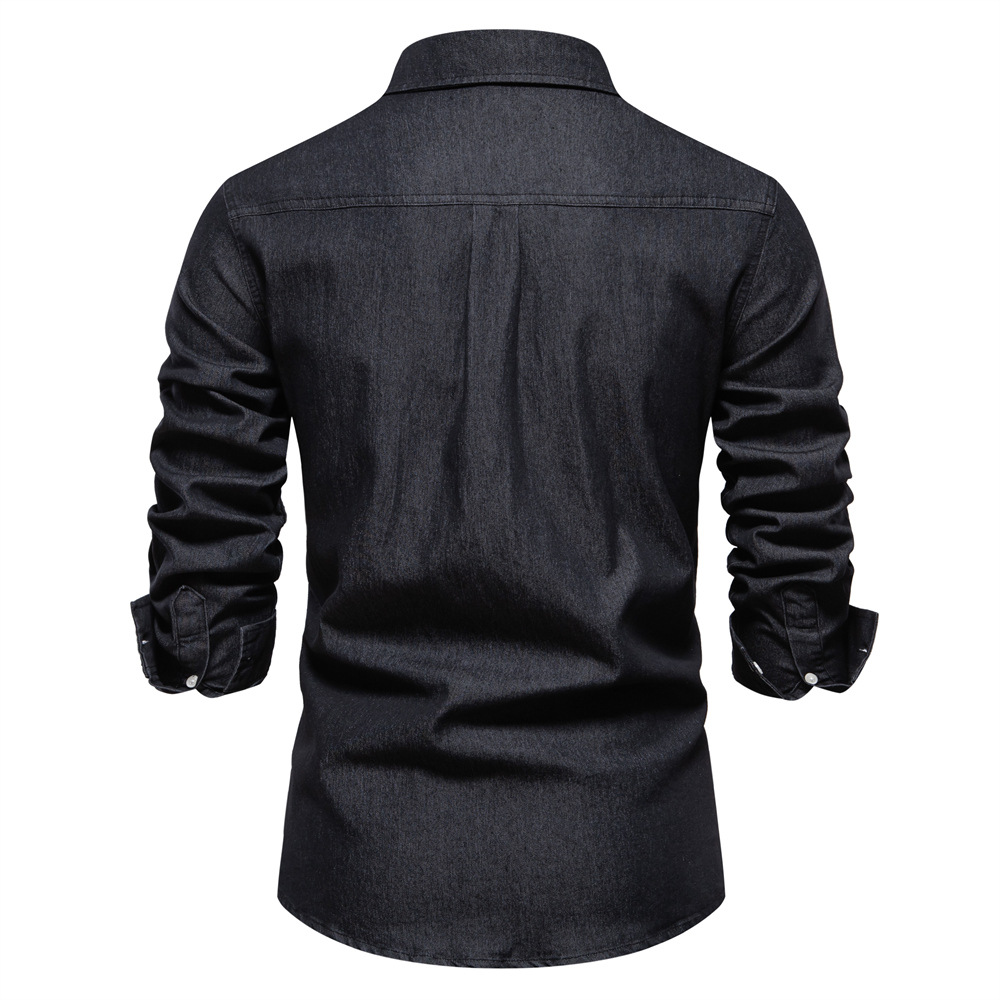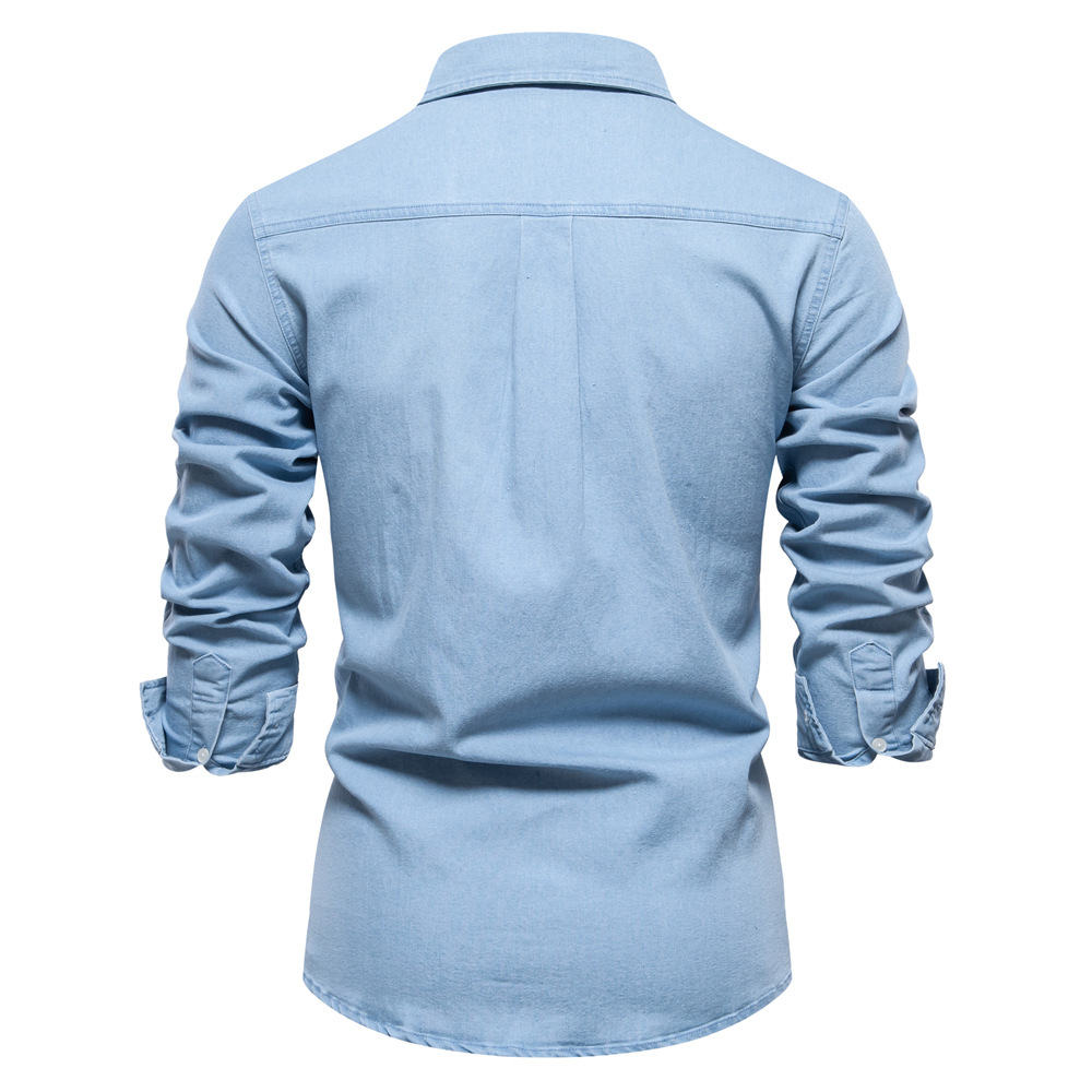 2024 대외 무역 국경 남성 유럽 사이즈 데님 셔츠 남성 캐주얼 단색 남성 Dannin 긴팔 셔츠
