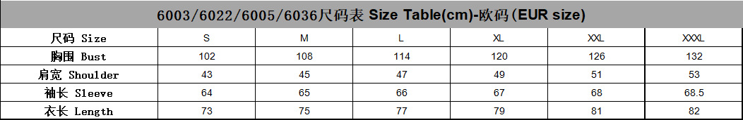 注意:6003/6022/6005/6036共用个尺码表,6019/6016共用第二个尺码表