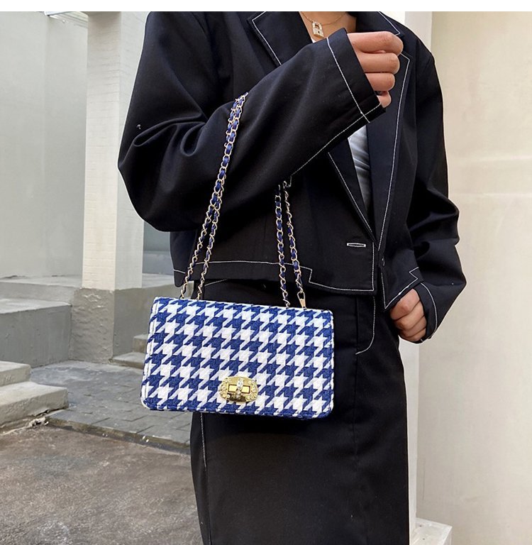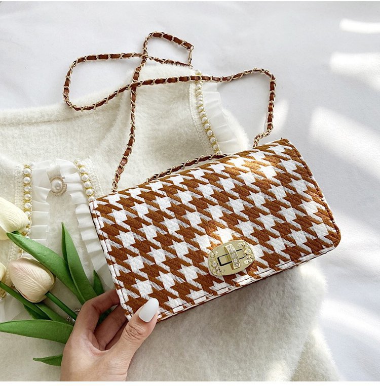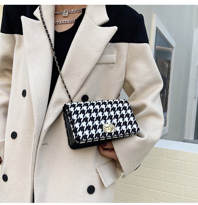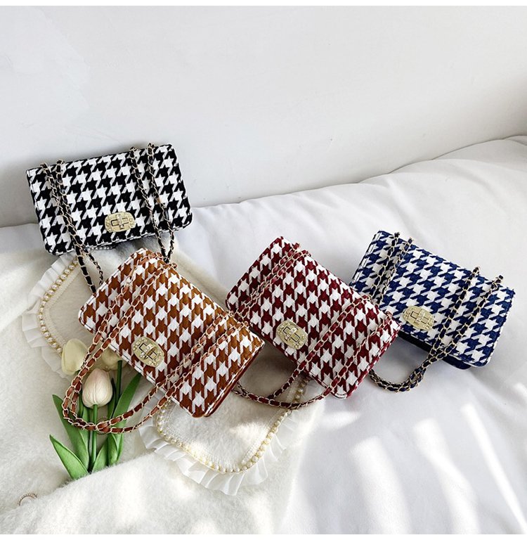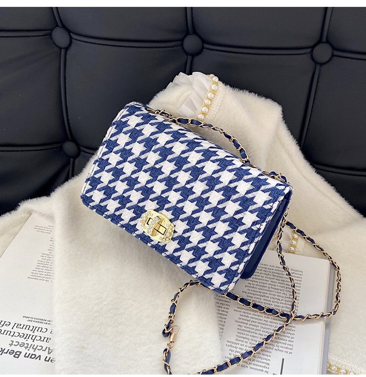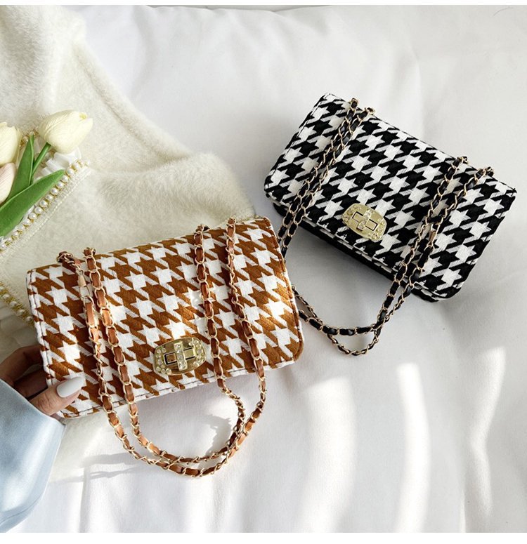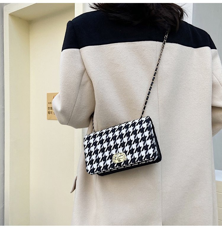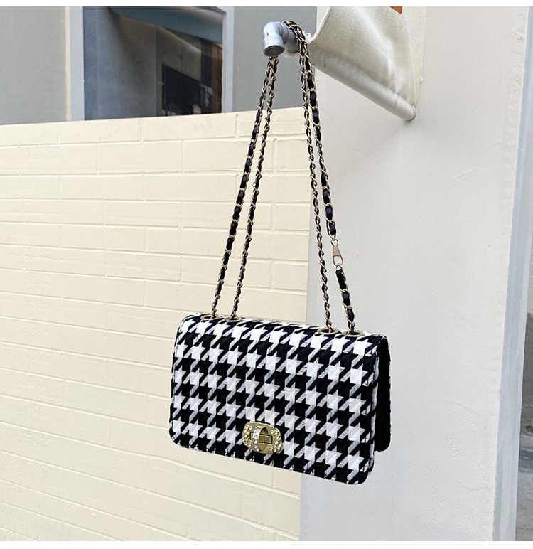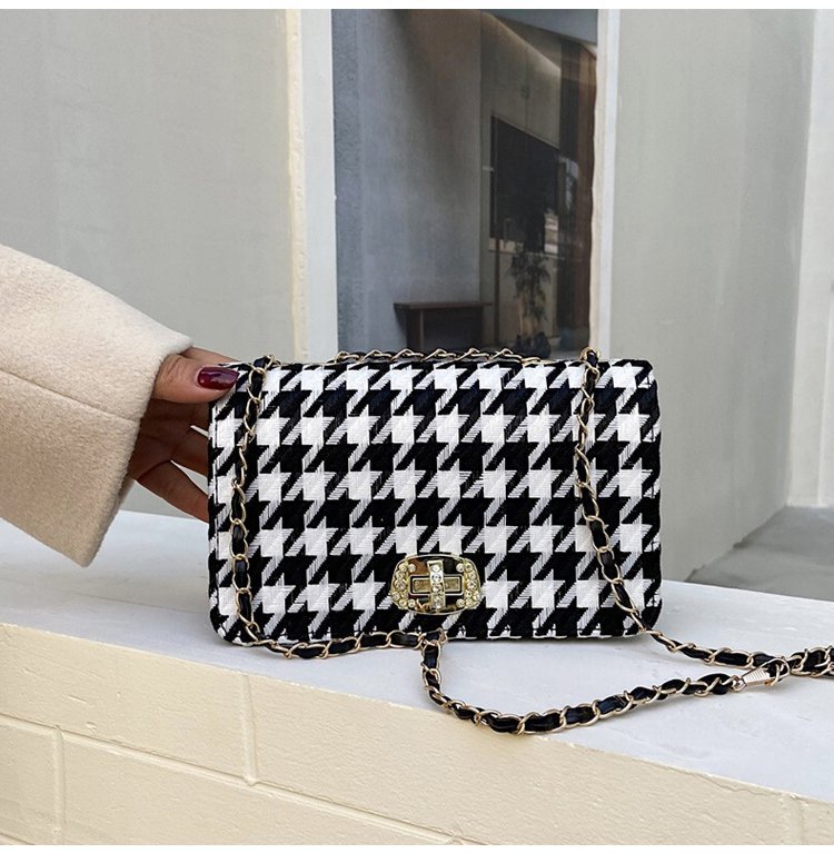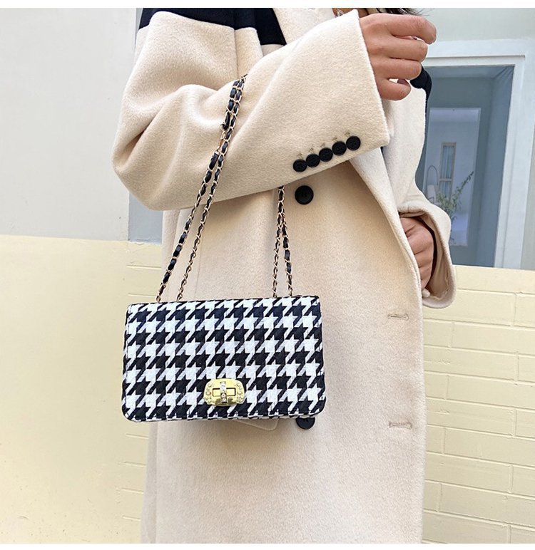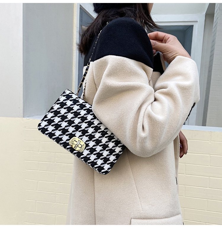 Houndstooth 스타일 샤넬 스타일 가방 여성의 2021 가을 겨울 새로운 한국 스타일 모직 가방 유행 숄더 크로스 바디 백스토어 가기
