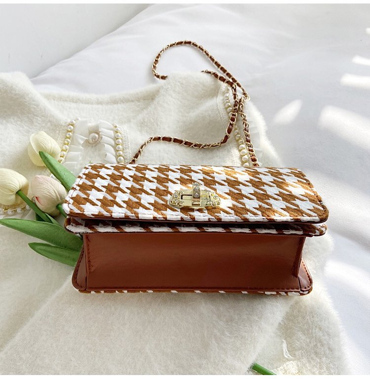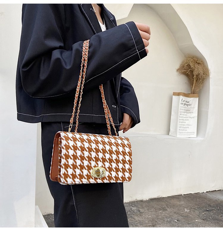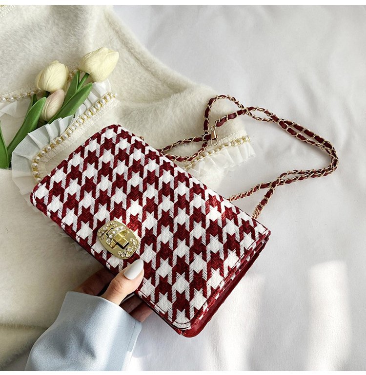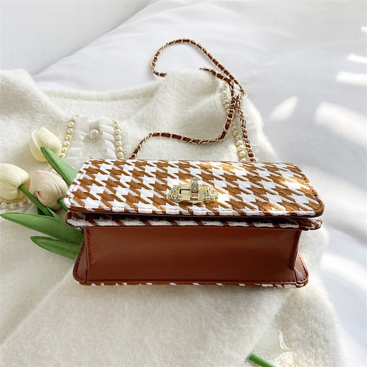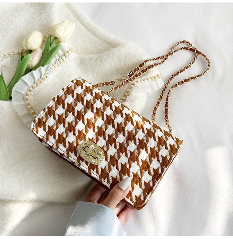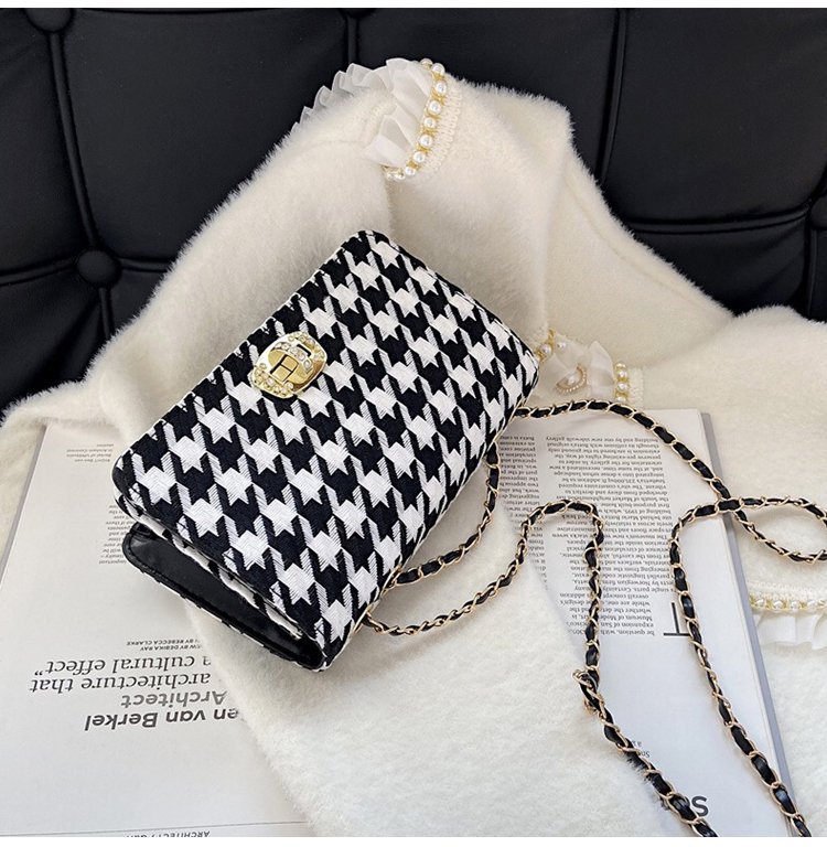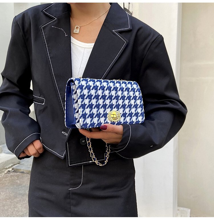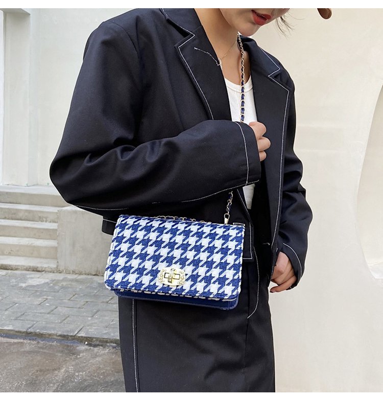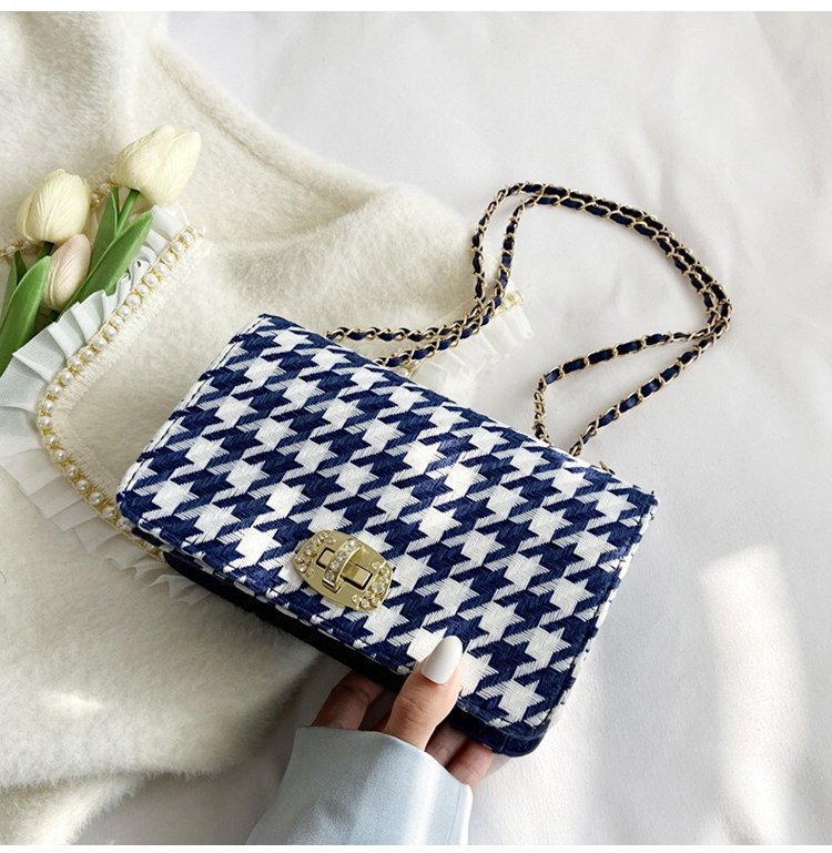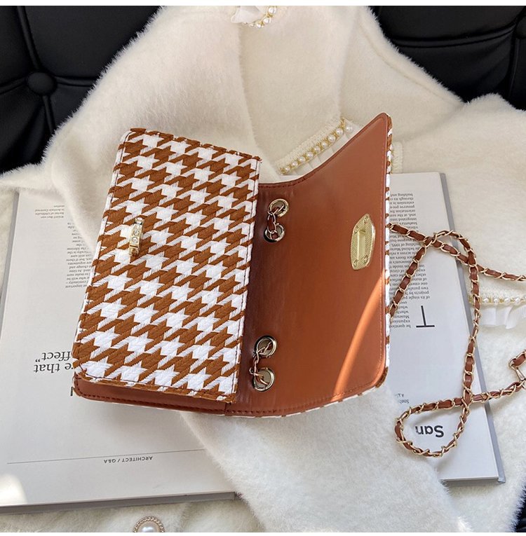 Houndstooth 스타일 샤넬 스타일 가방 여성의 2021 가을 겨울 새로운 한국 스타일 모직 가방 유행 숄더 크로스 바디 백스토어 가기