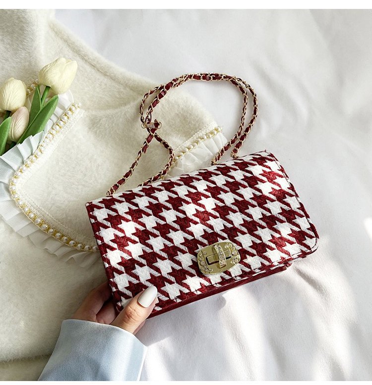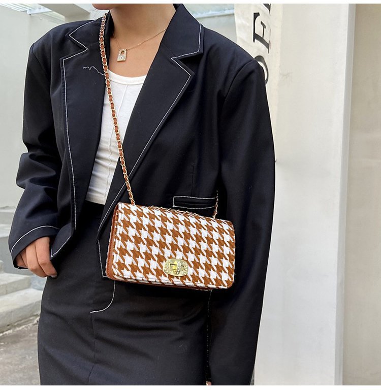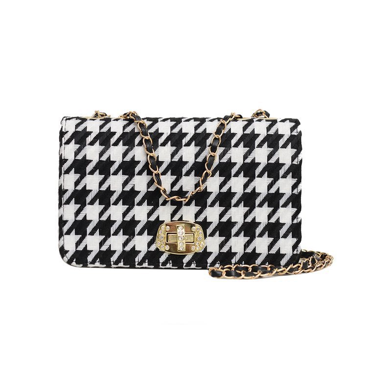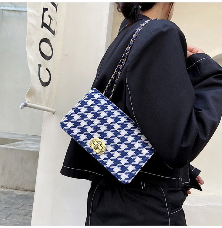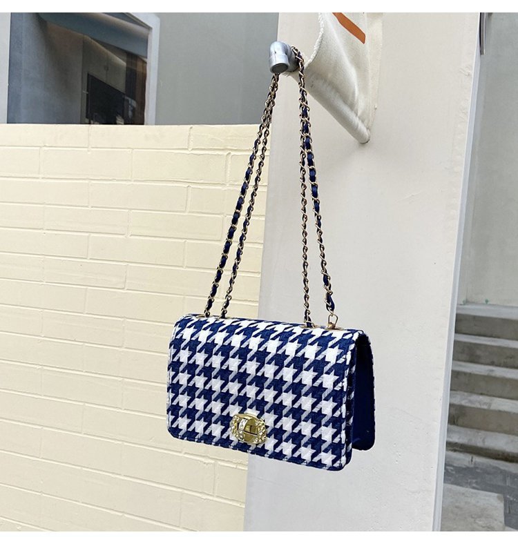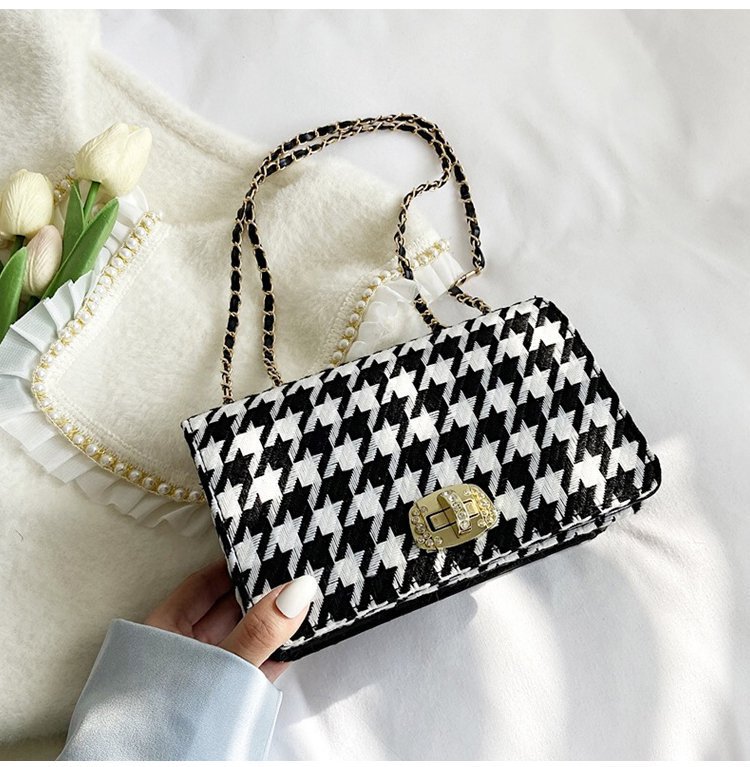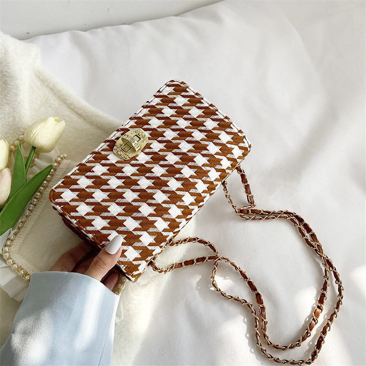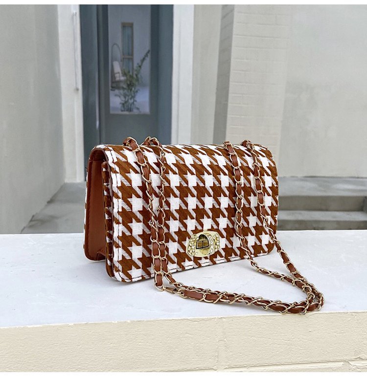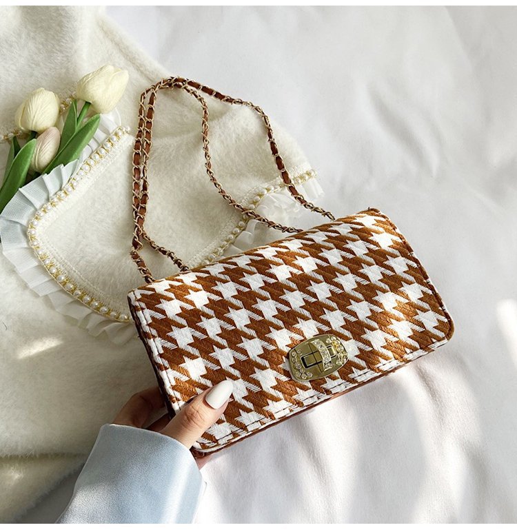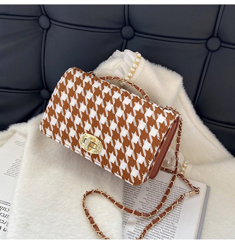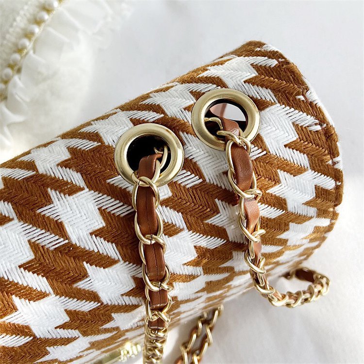 Houndstooth 스타일 샤넬 스타일 가방 여성의 2021 가을 겨울 새로운 한국 스타일 모직 가방 유행 숄더 크로스 바디 백스토어 가기