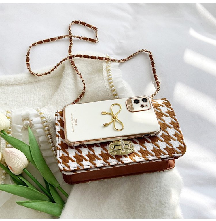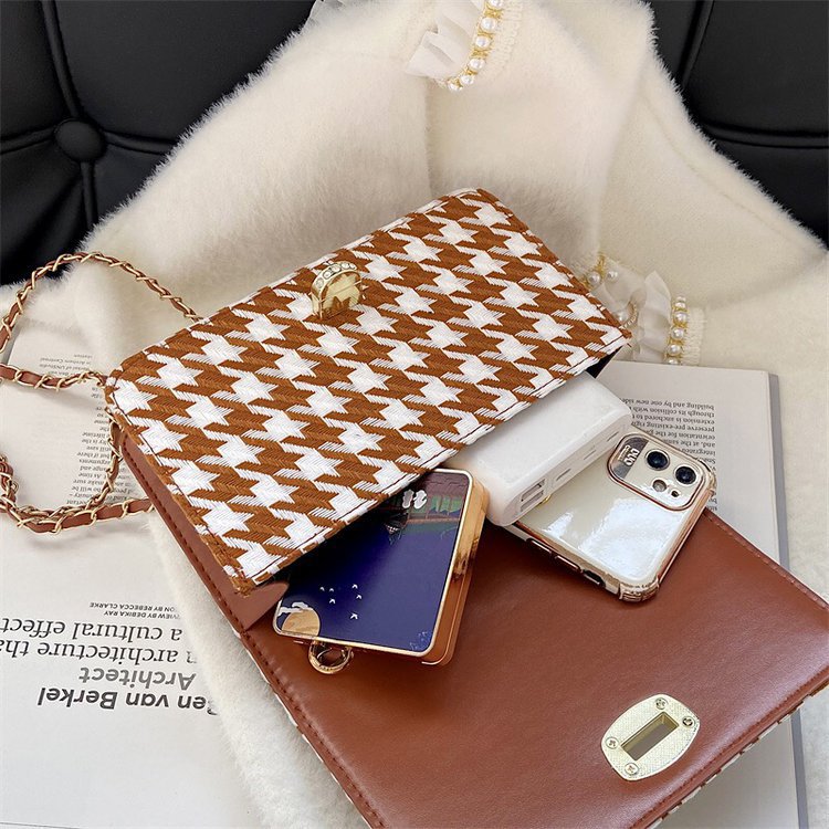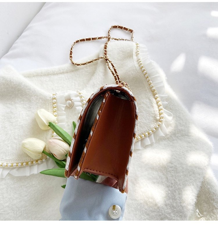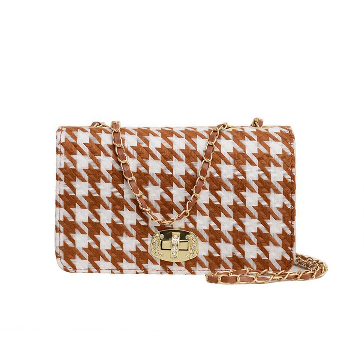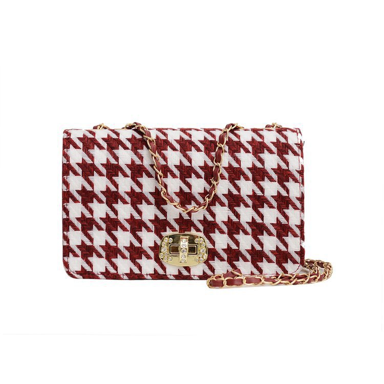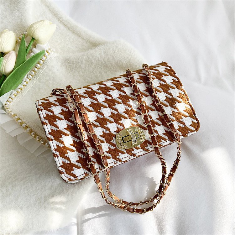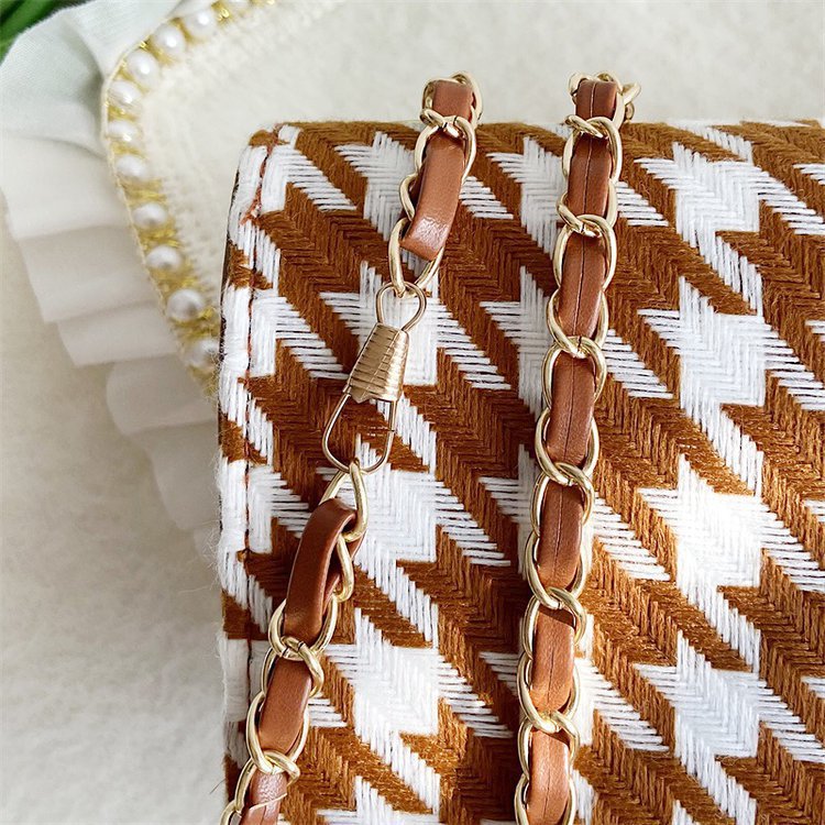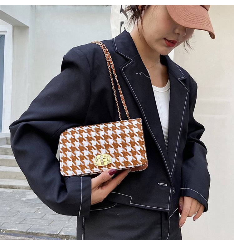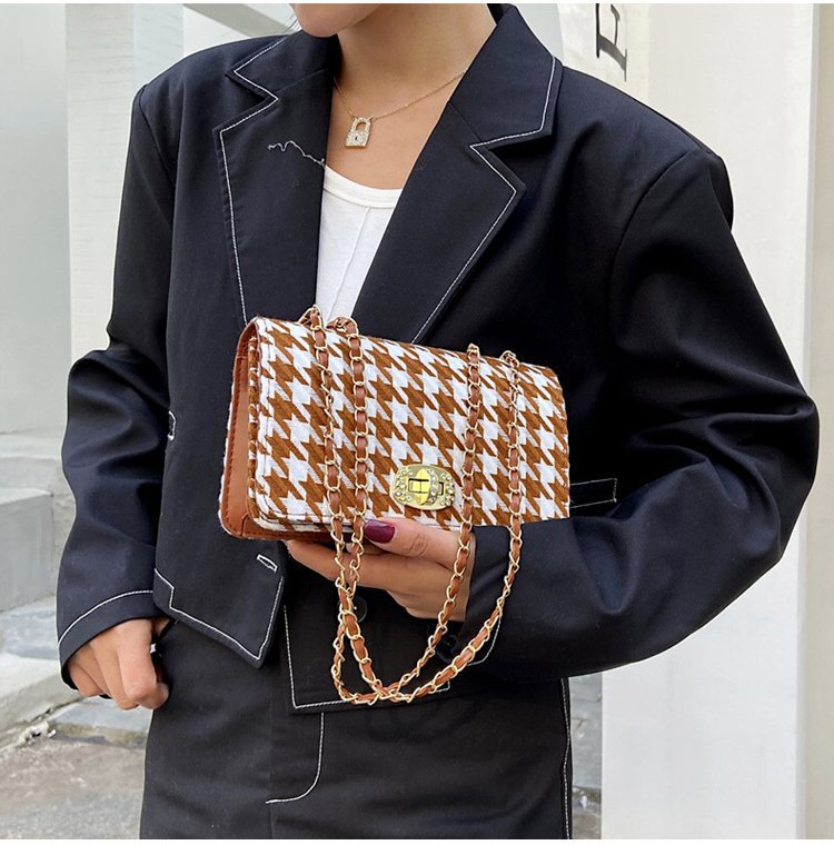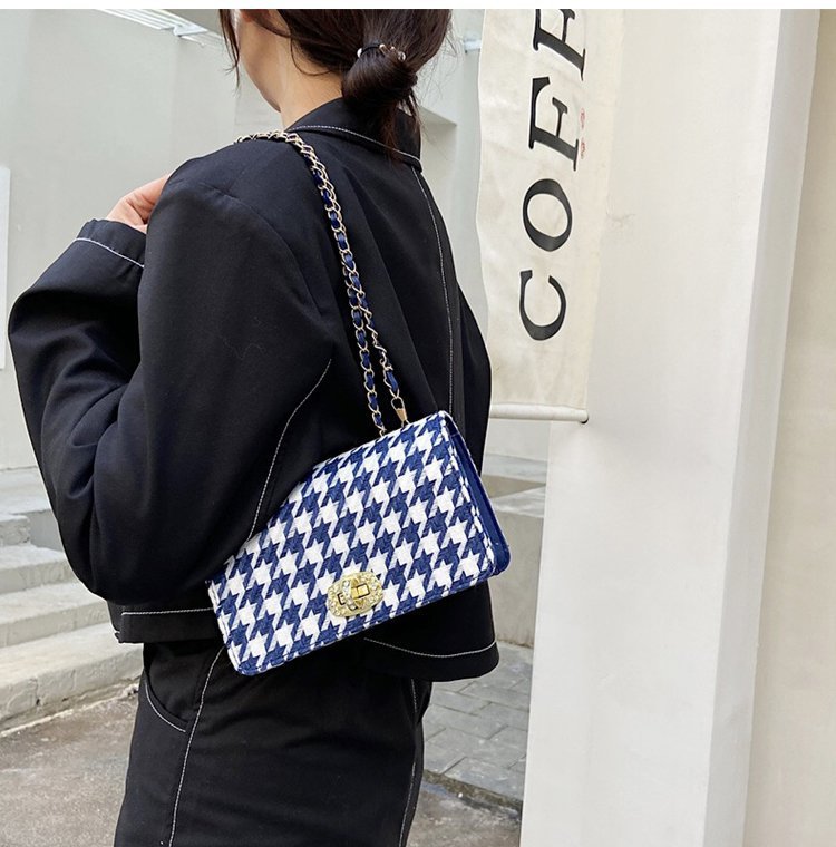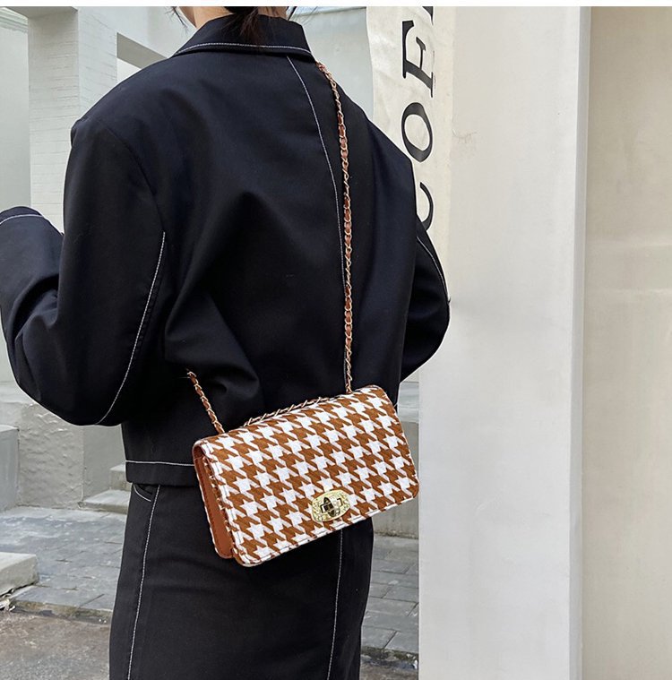 Houndstooth 스타일 샤넬 스타일 가방 여성의 2021 가을 겨울 새로운 한국 스타일 모직 가방 유행 숄더 크로스 바디 백스토어 가기