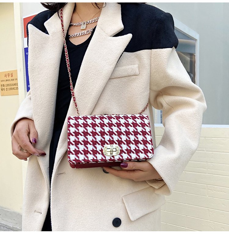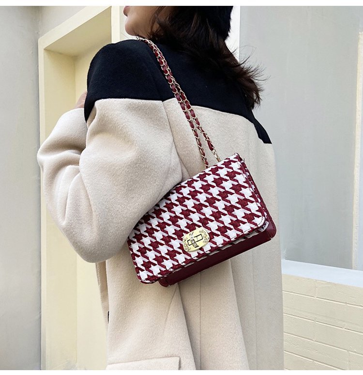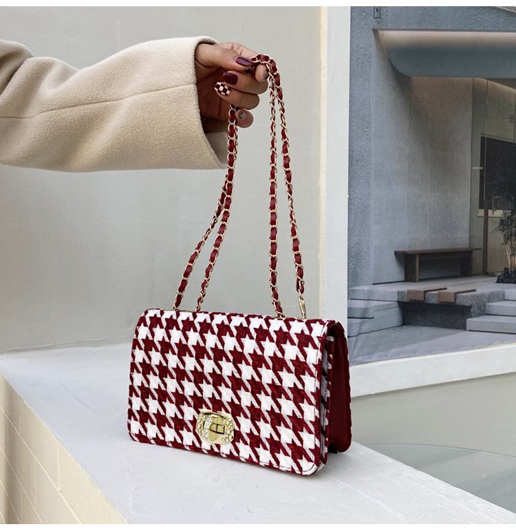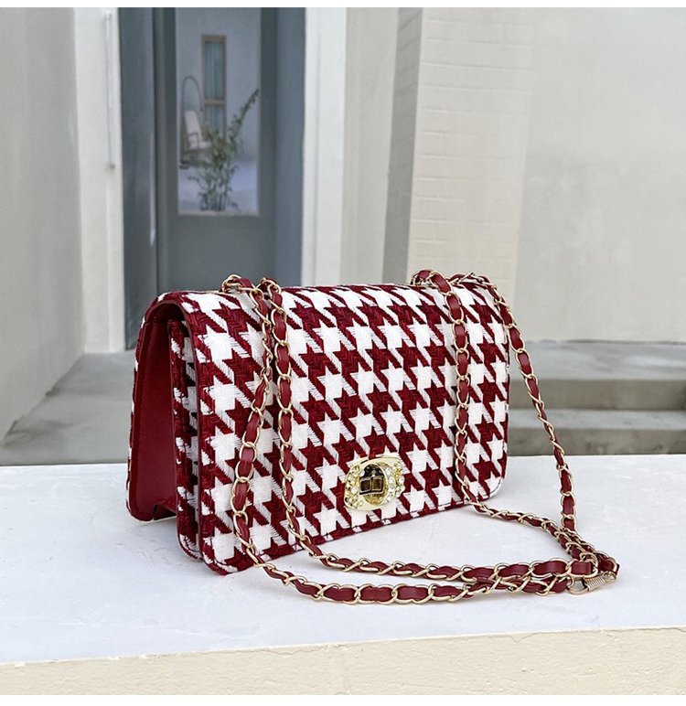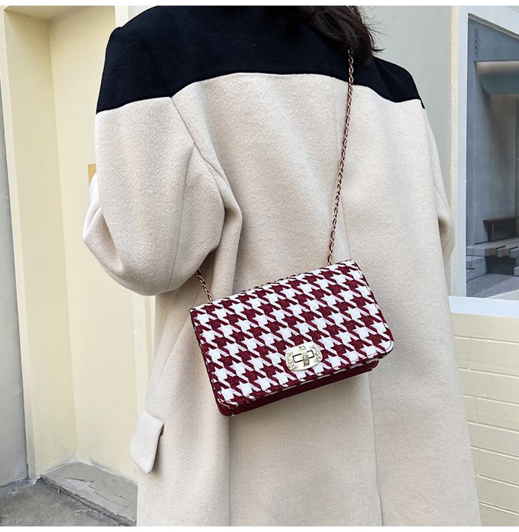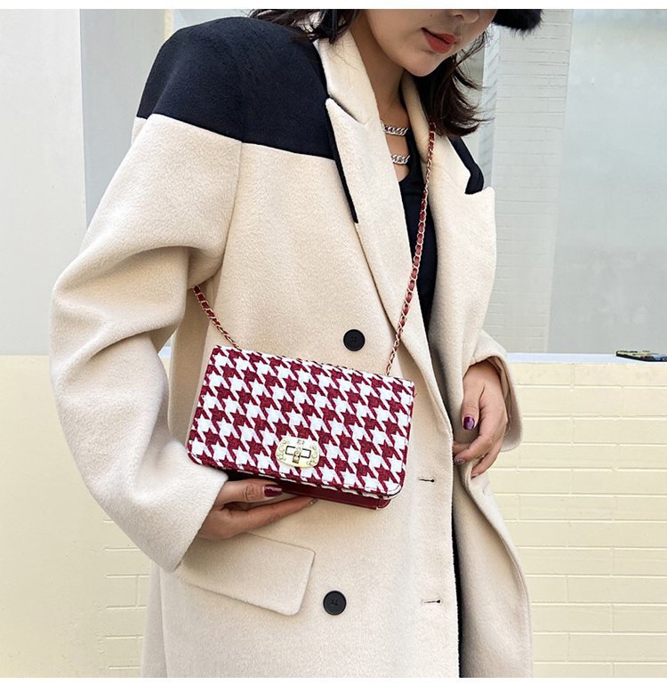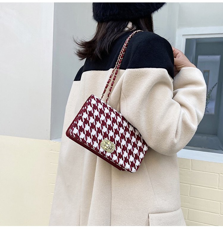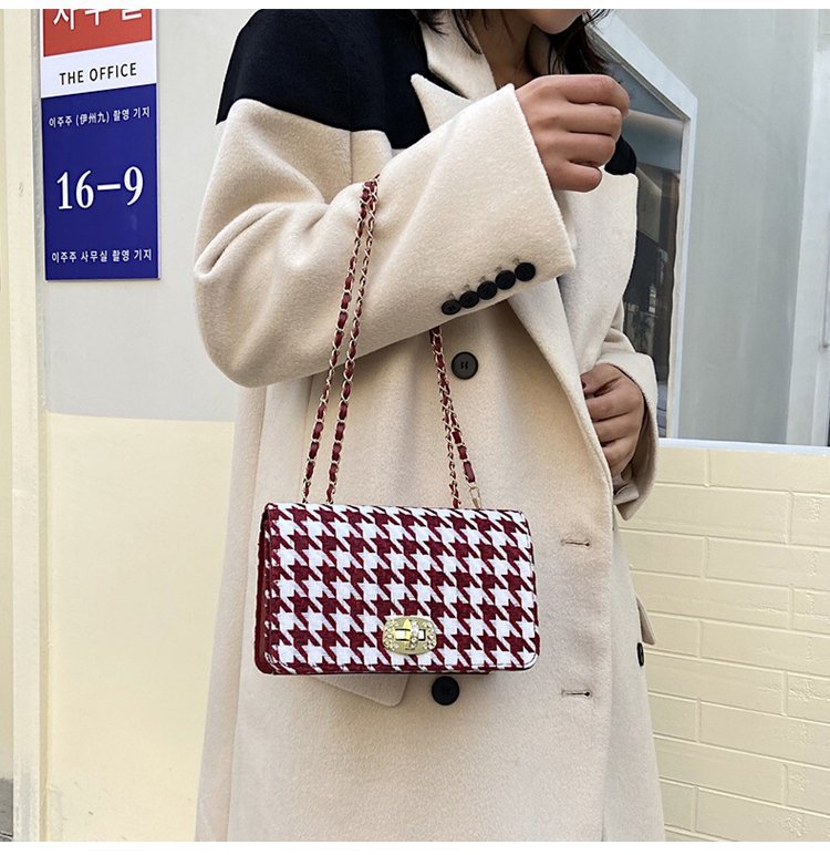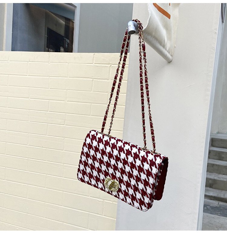 Houndstooth 스타일 샤넬 스타일 가방 여성의 2021 가을 겨울 새로운 한국 스타일 모직 가방 유행 숄더 크로스 바디 백