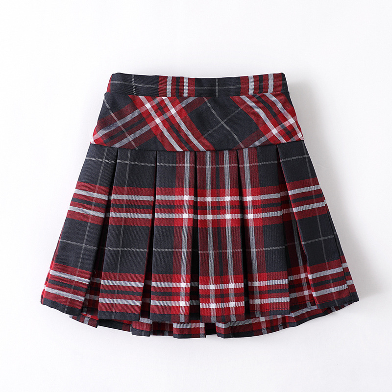 소녀의 치마 봄과 가을 어린이 주름 치마 빨간 격자 무늬 치마 큰 어린이 짧은 치마 대학 스타일 교복 격자 무늬 치마