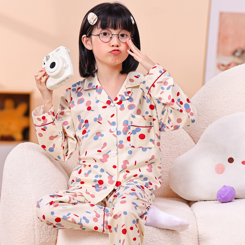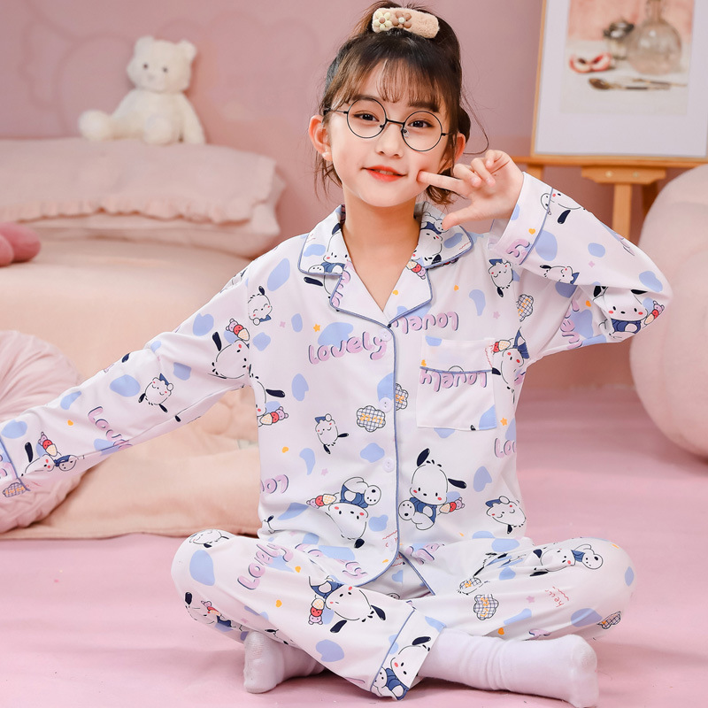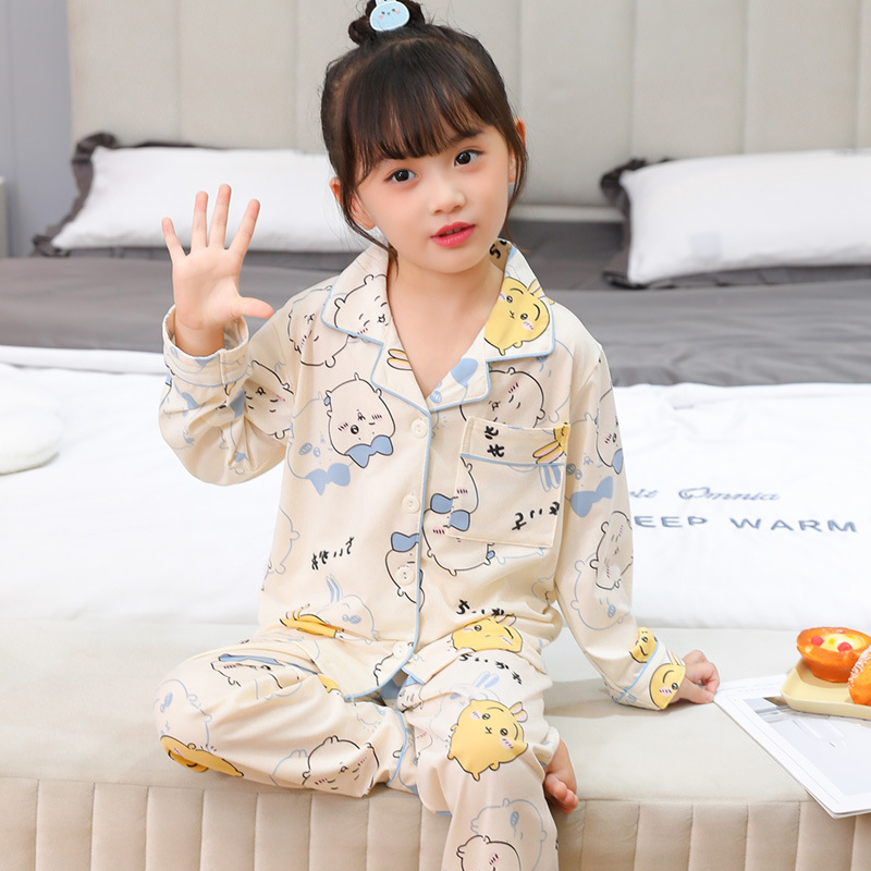 봄과 가을 어린이 잠옷 여아 옷깃 가디건 귀여운 만화 달콤한 느슨한 얇은 작고 큰 어린이 가정복