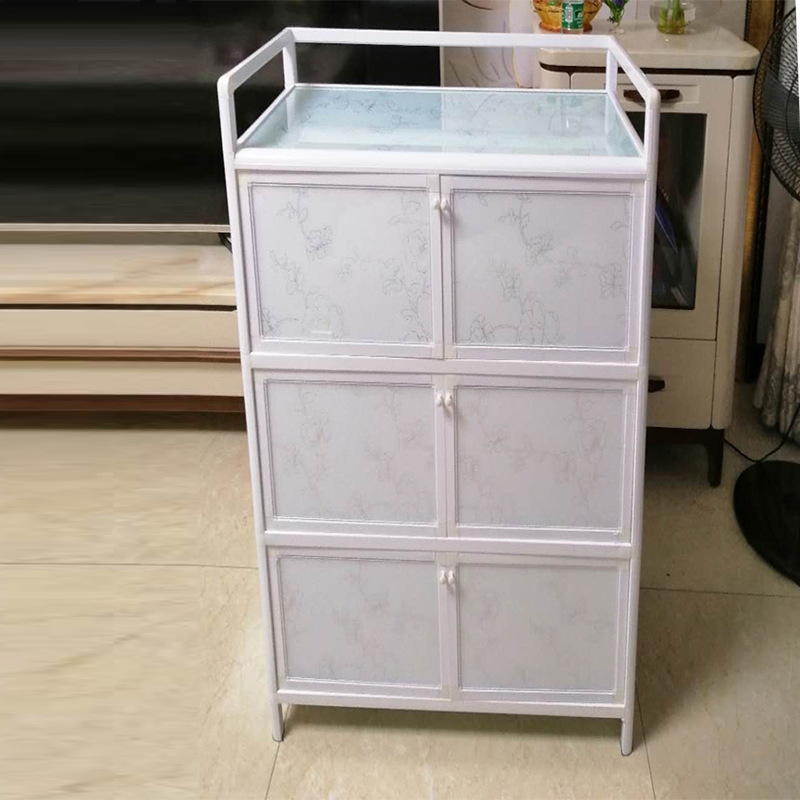 알루미늄 합금 캐비닛 문이있는 간단한 보관 캐비닛 가정용 경제적 찬장 찬장 스테인레스 스틸 주방 수납 캐비닛