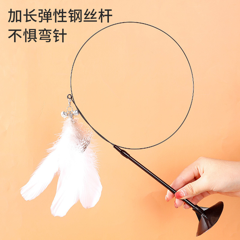 롱로드 흡입 컵 스틸 와이어 고양이 티저 벨 깃털 핸드 헬드 펫 인터랙티브 고양이 장난감 확장 고양이 용품스토어 가기