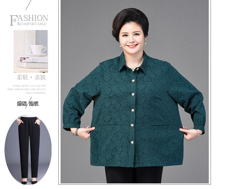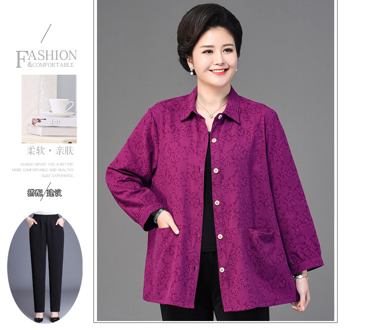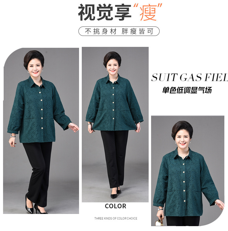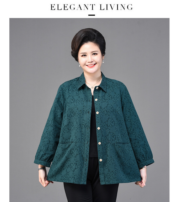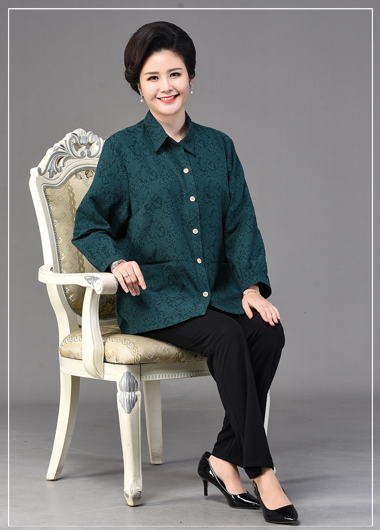 2025 봄옷 중노년 여성용 9부 셔츠 루즈핏 엄마복 노인용 상의 신상품 라펠 카라 여성용 단색 슬림핏