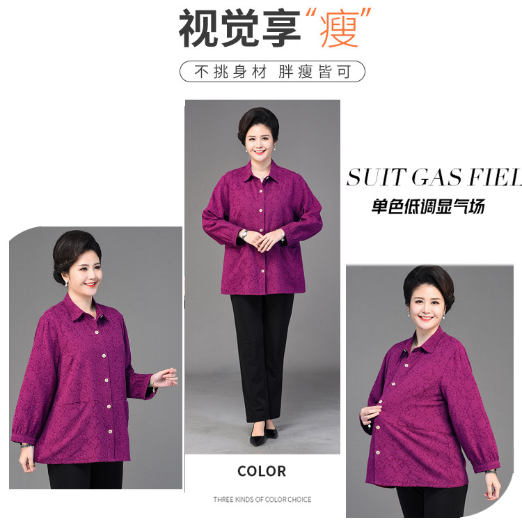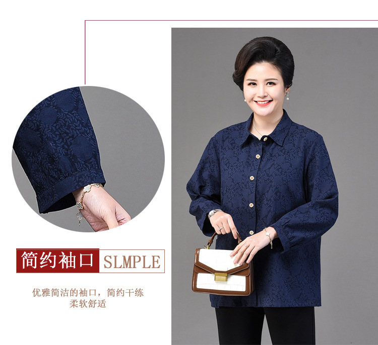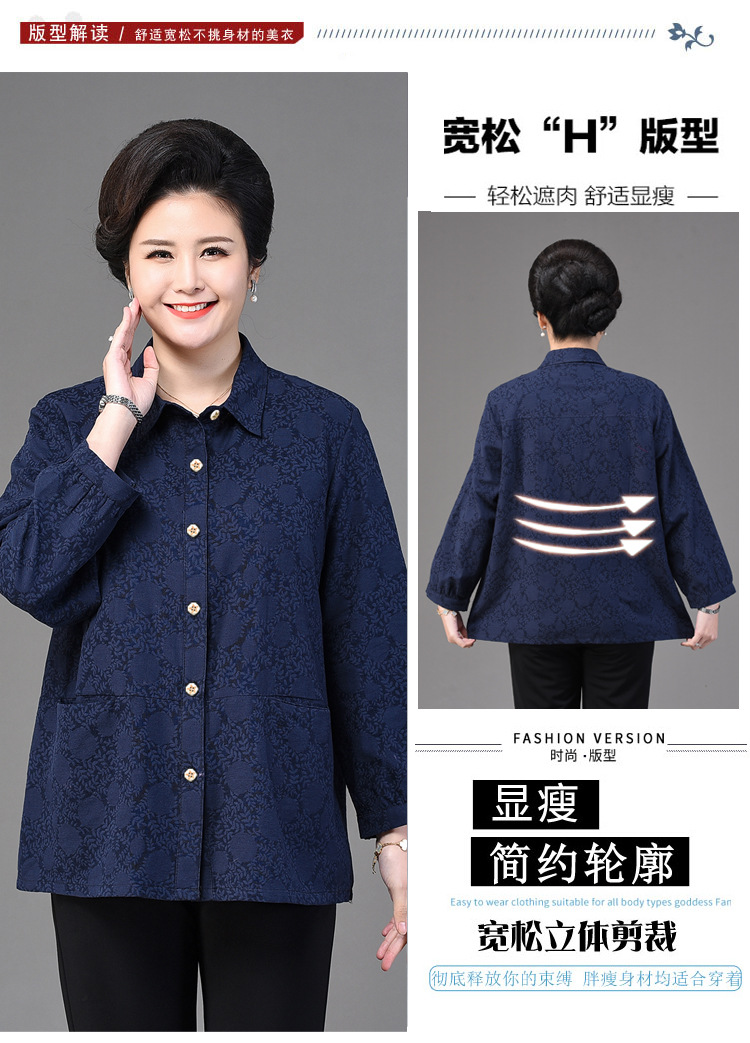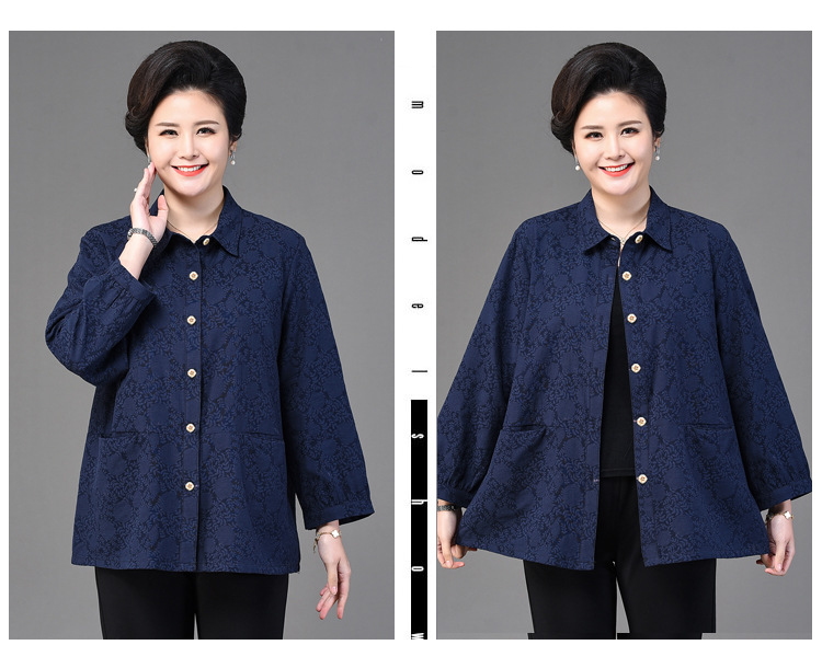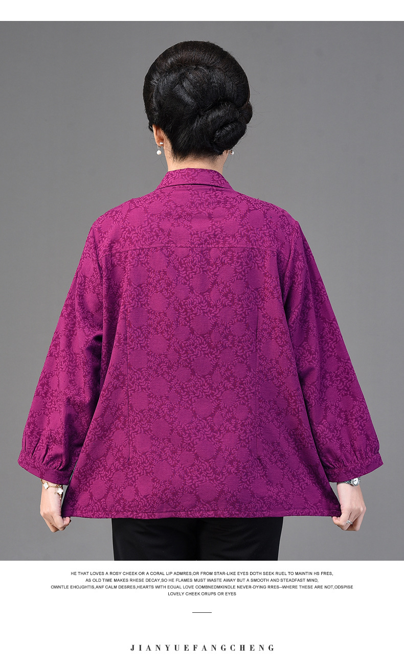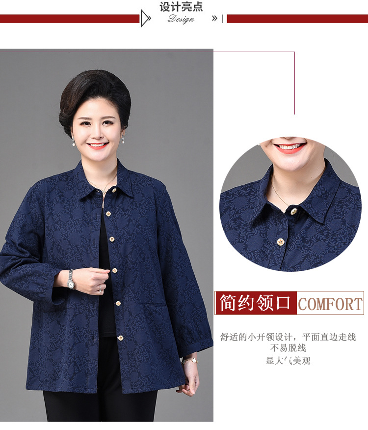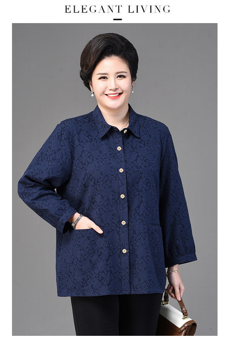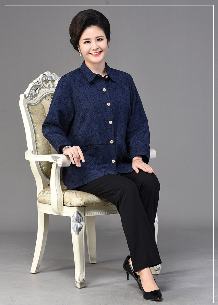 2025 봄옷 중노년 여성용 9부 셔츠 루즈핏 엄마복 노인용 상의 신상품 라펠 카라 여성용 단색 슬림핏스토어 가기