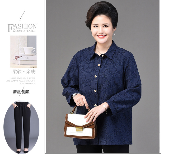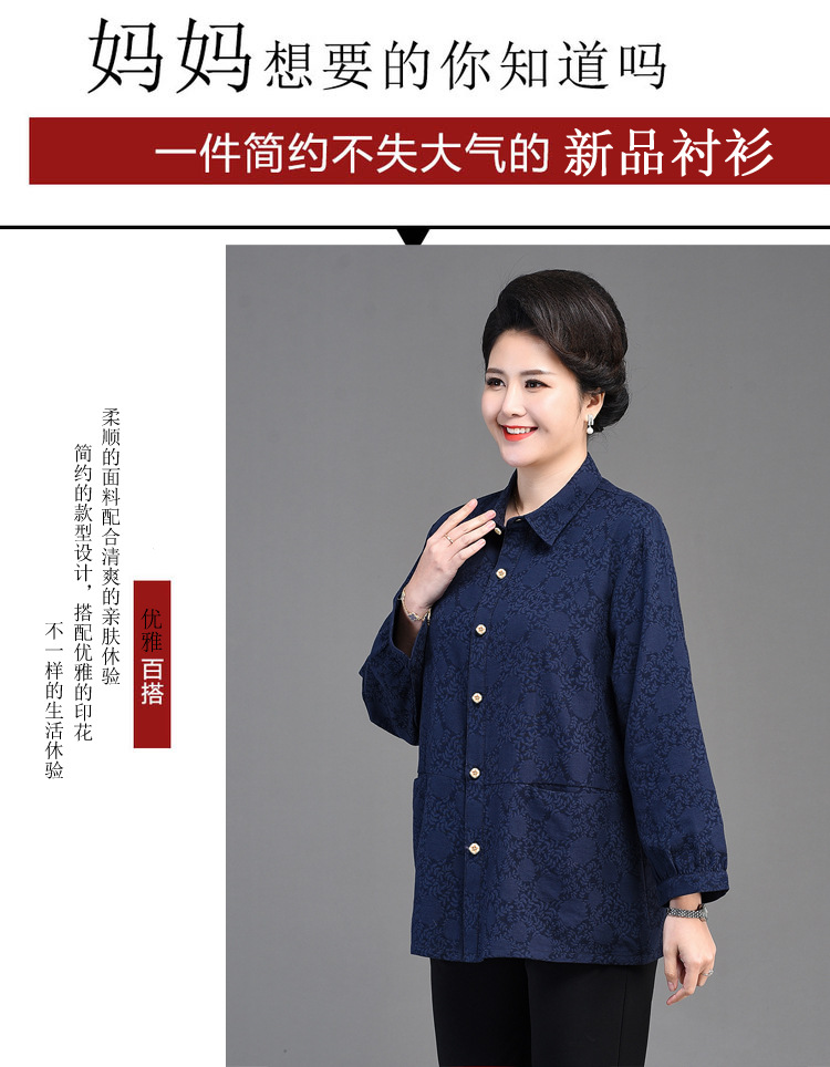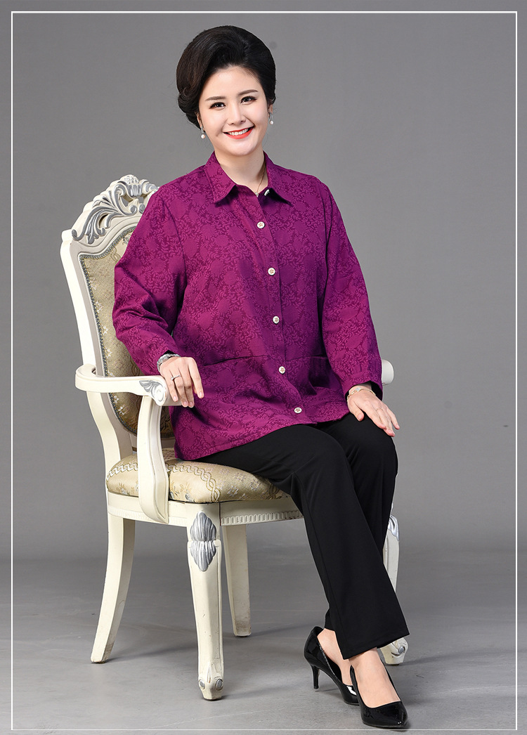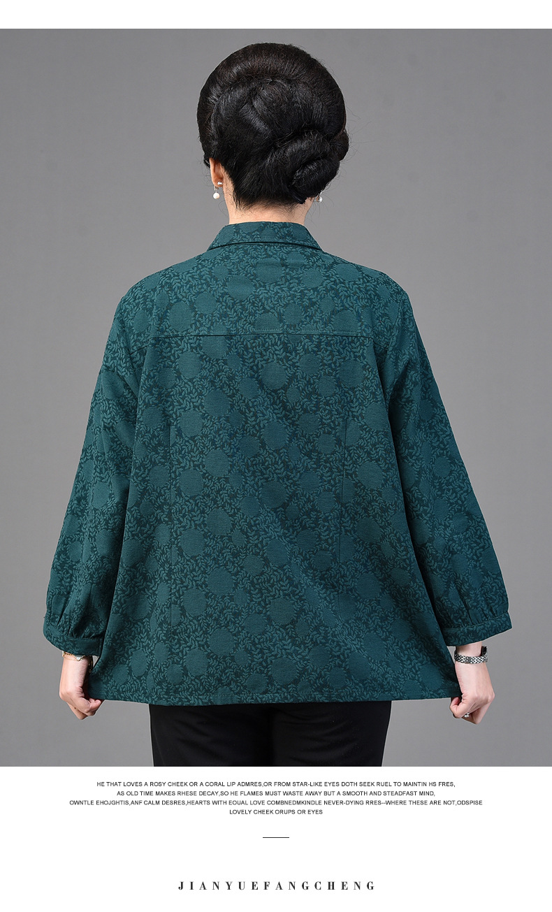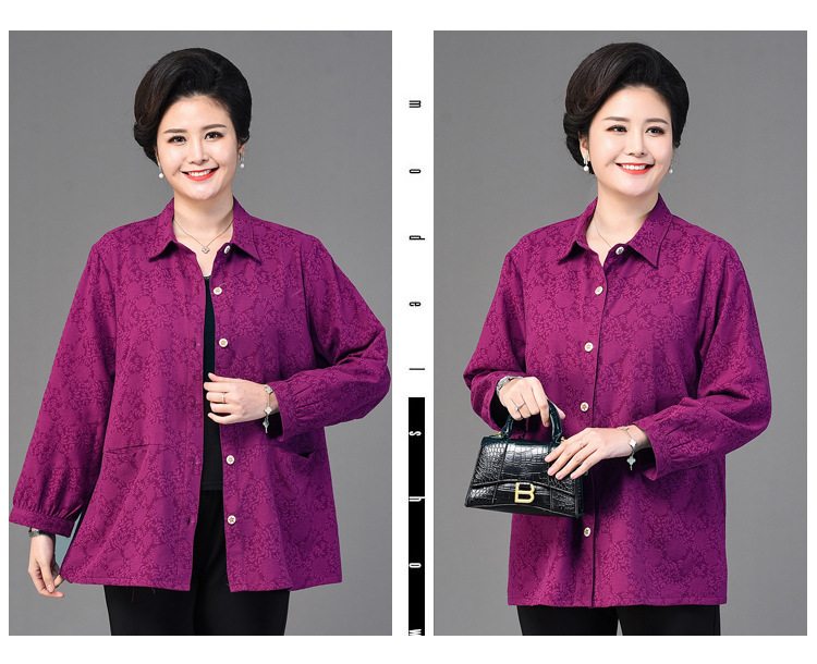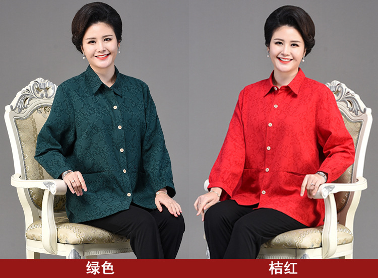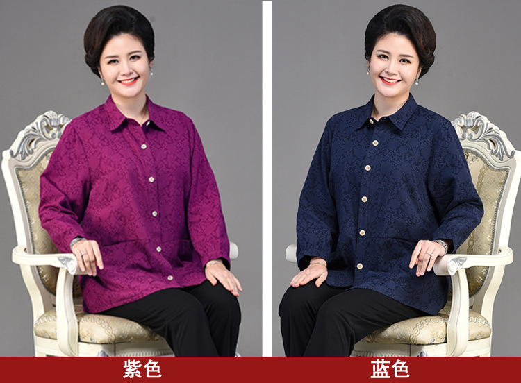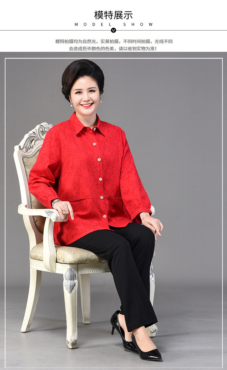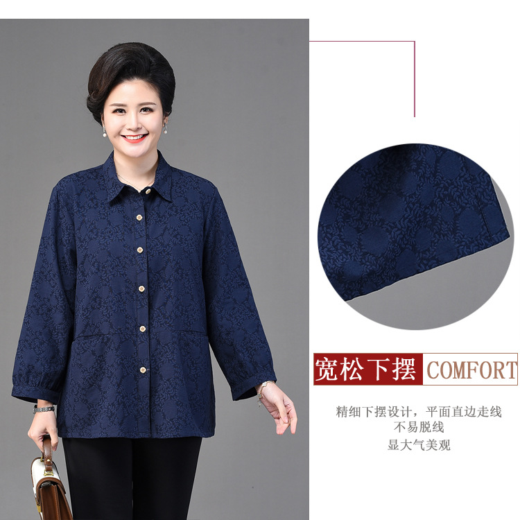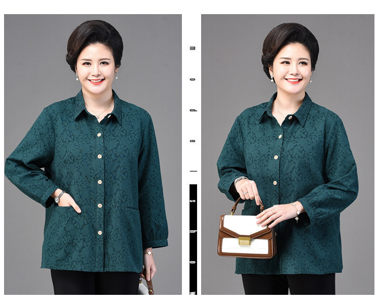2025 봄옷 중노년 여성용 9부 셔츠 루즈핏 엄마복 노인용 상의 신상품 라펠 카라 여성용 단색 슬림핏스토어 가기