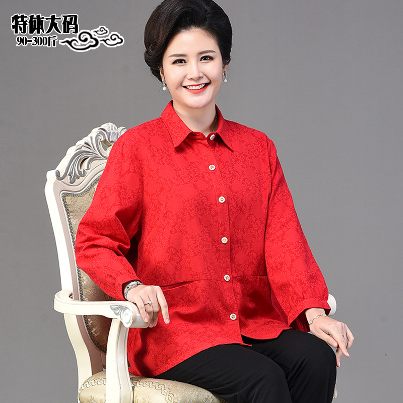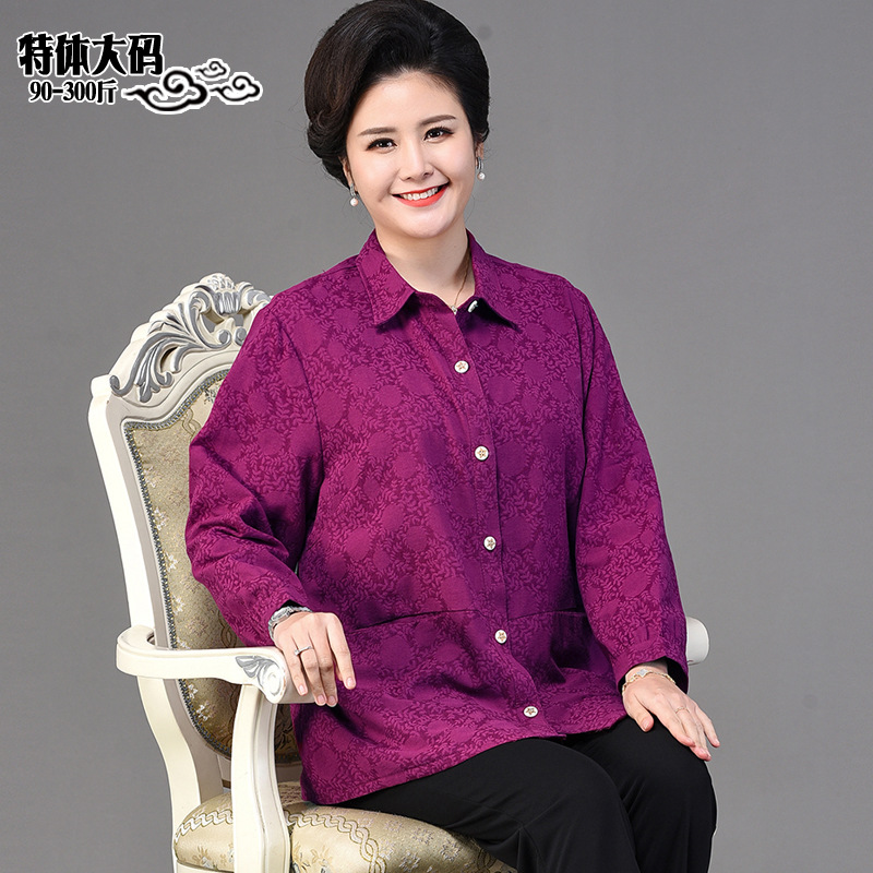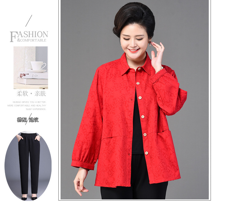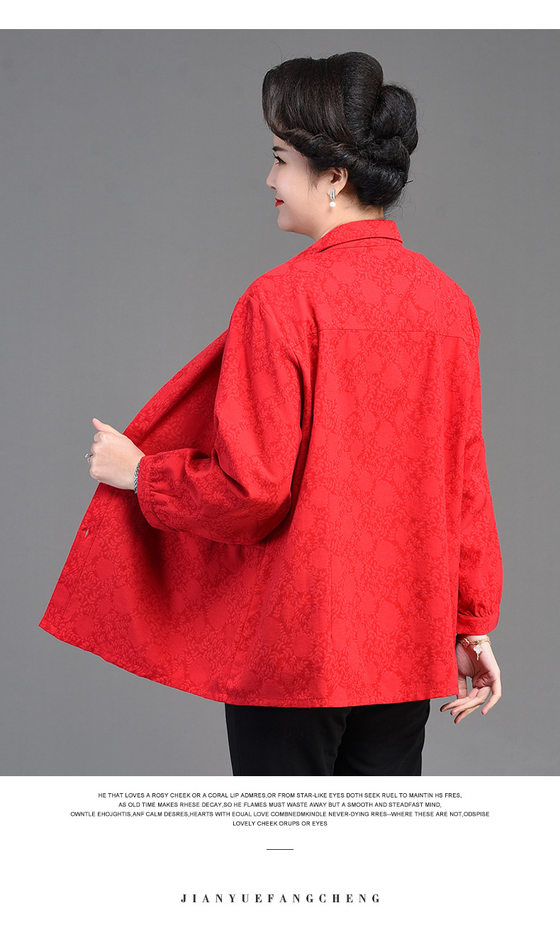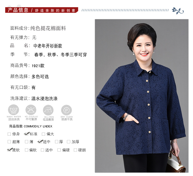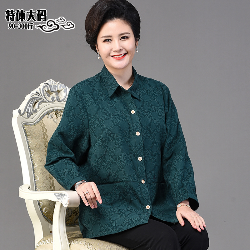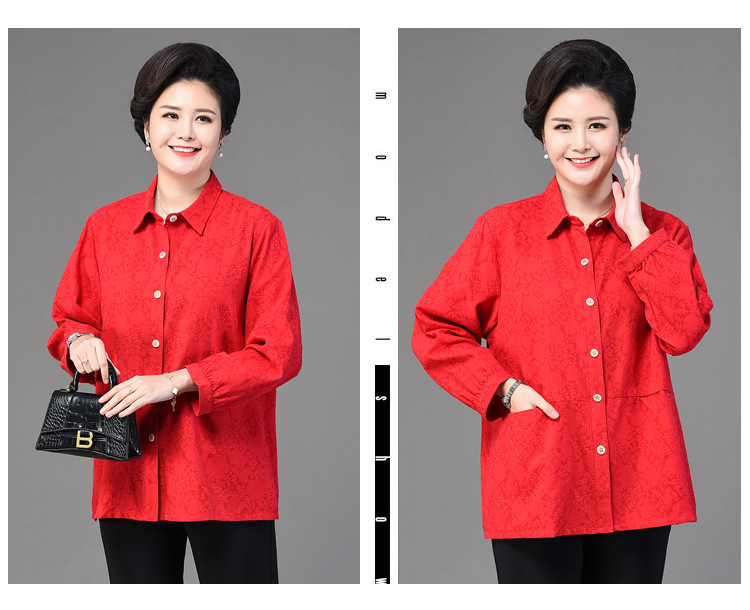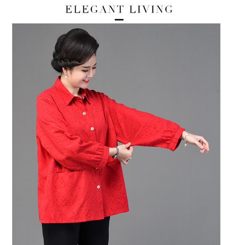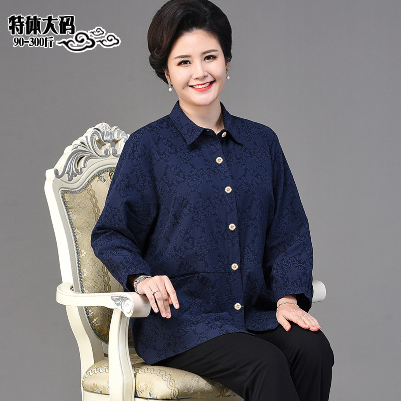 2025 봄옷 중노년 여성용 9부 셔츠 루즈핏 엄마복 노인용 상의 신상품 라펠 카라 여성용 단색 슬림핏스토어 가기