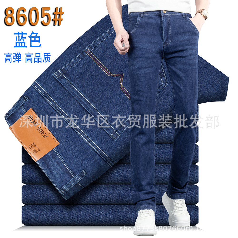 2025 여름 새로운 남성 청바지 스트레이트 내마모성 청소년 높은 허리 남성 유행 비즈니스 캐주얼 긴 바지스토어 가기