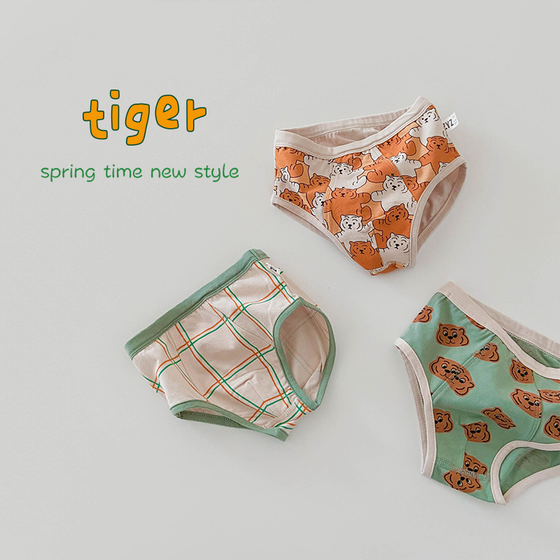 N076 어린이 속옷 도매 봄과 가을 쿵푸 호랑이 아기 속옷 플랫 코너 면 새해 소년 속옷스토어 가기