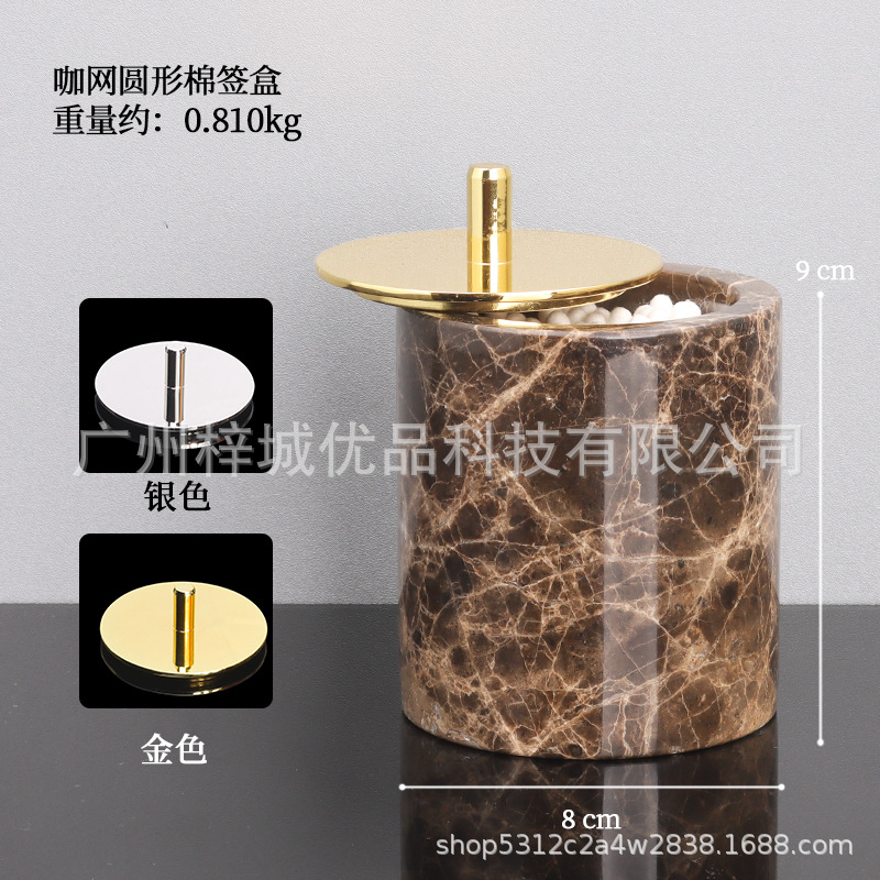 • 다크 브라운 그물 대리석 면봉 상자 (원형)
