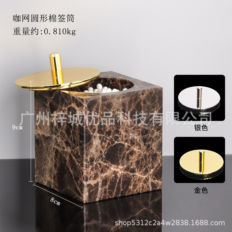 • 다크 브라운 그물 대리석 면봉 상자 (사각형)