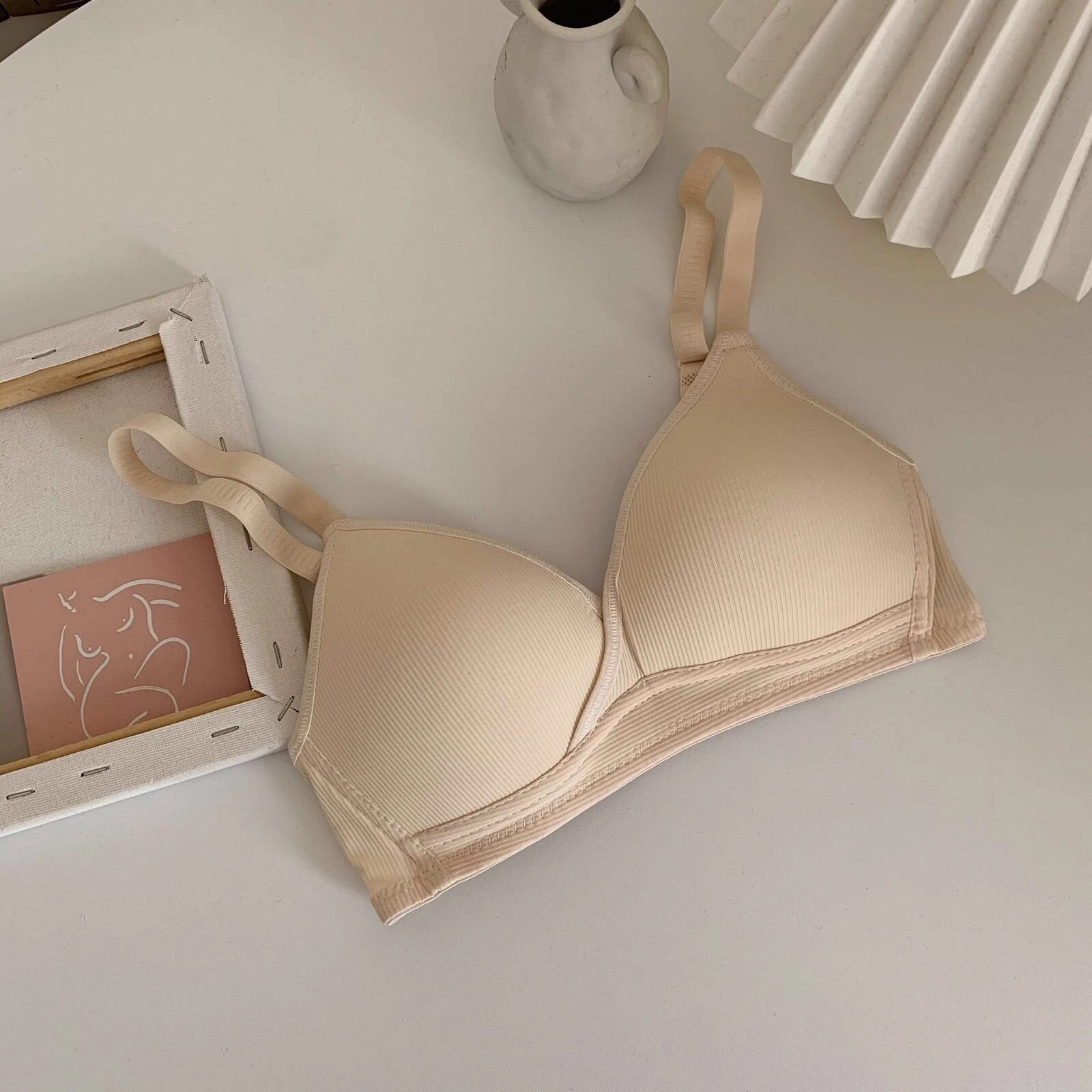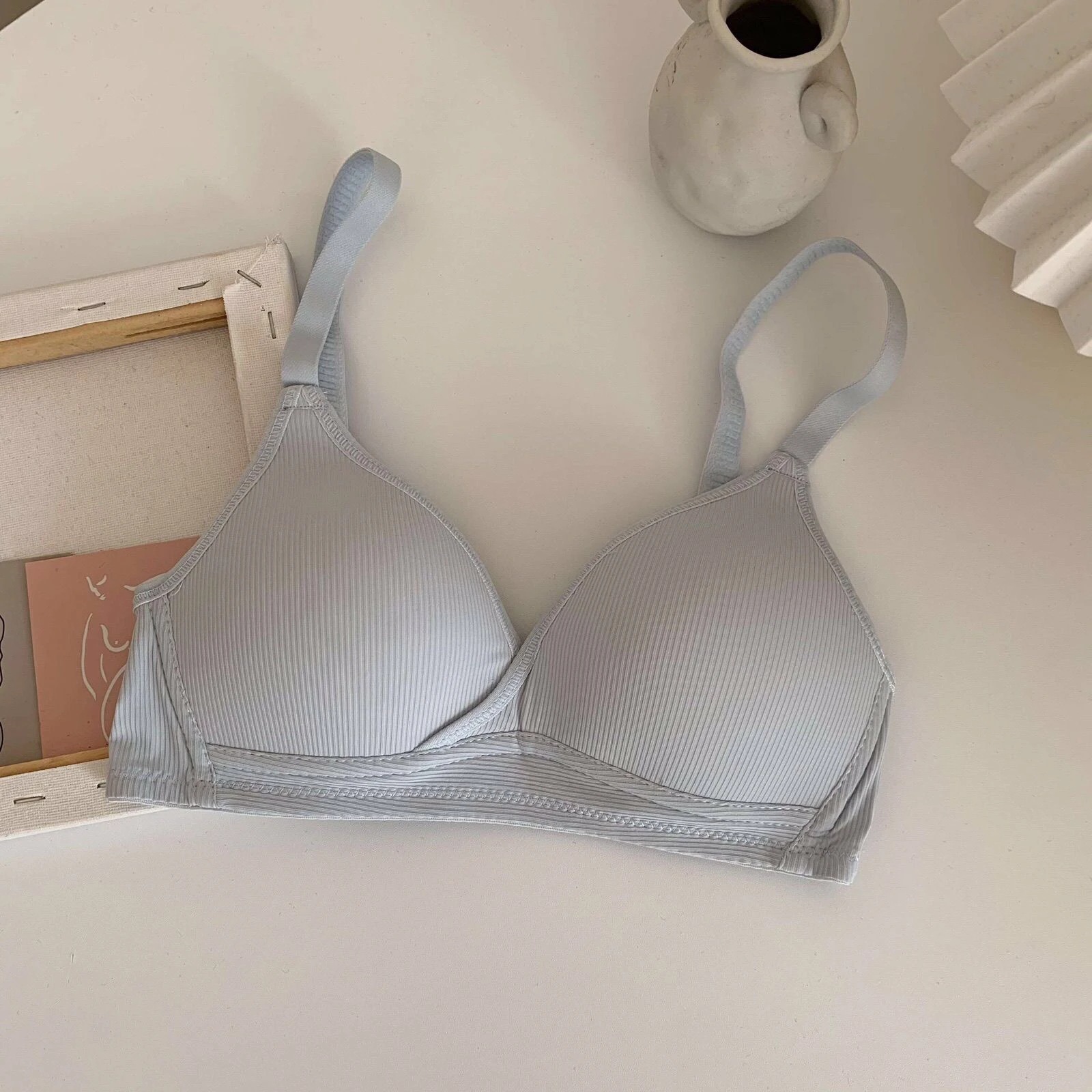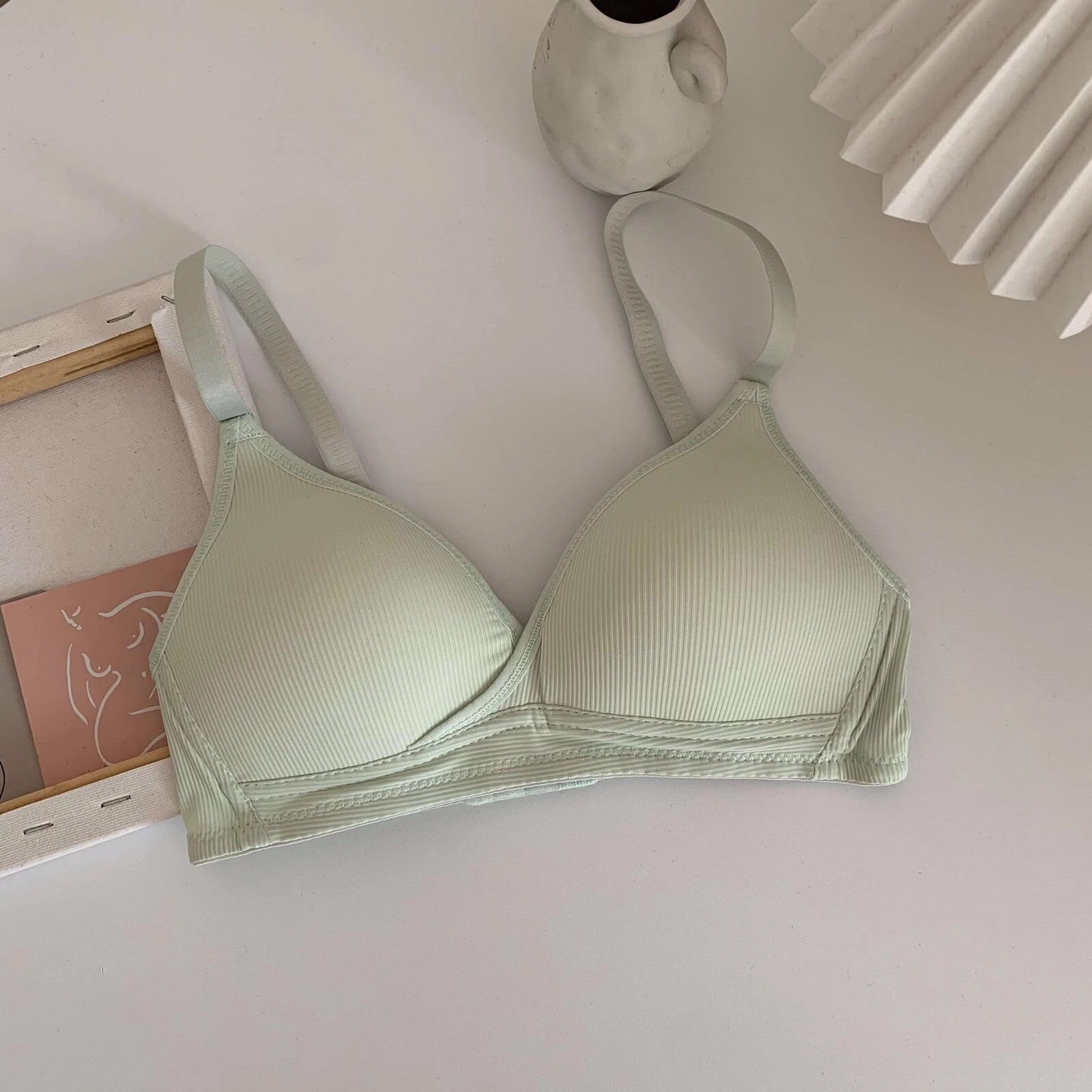 일본식 세로 줄무늬 속옷 여성용 속옷 스틸 링이없는 학생 브래지어 얇은 소녀의 작은 가슴 모여 액세서리 유방 편안한 브래지어