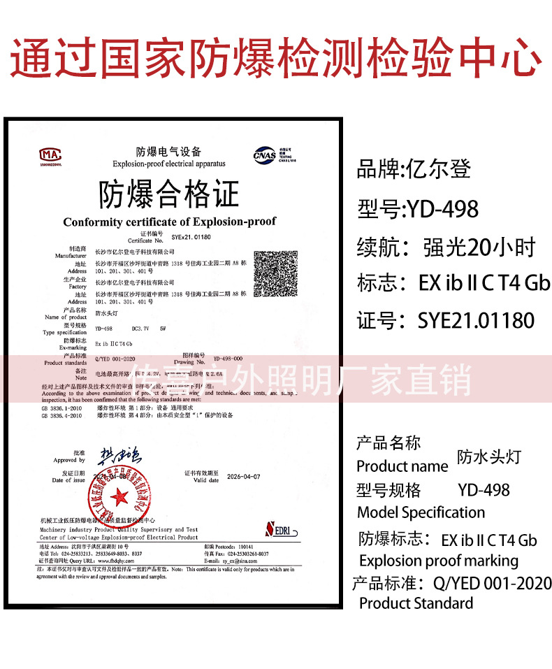 Yilden 498 안전 헬멧 방폭 광부의 램프 석탄 광산 특수 지하 전조등 헤드 마모 강한 빛 다이빙 충전 방수