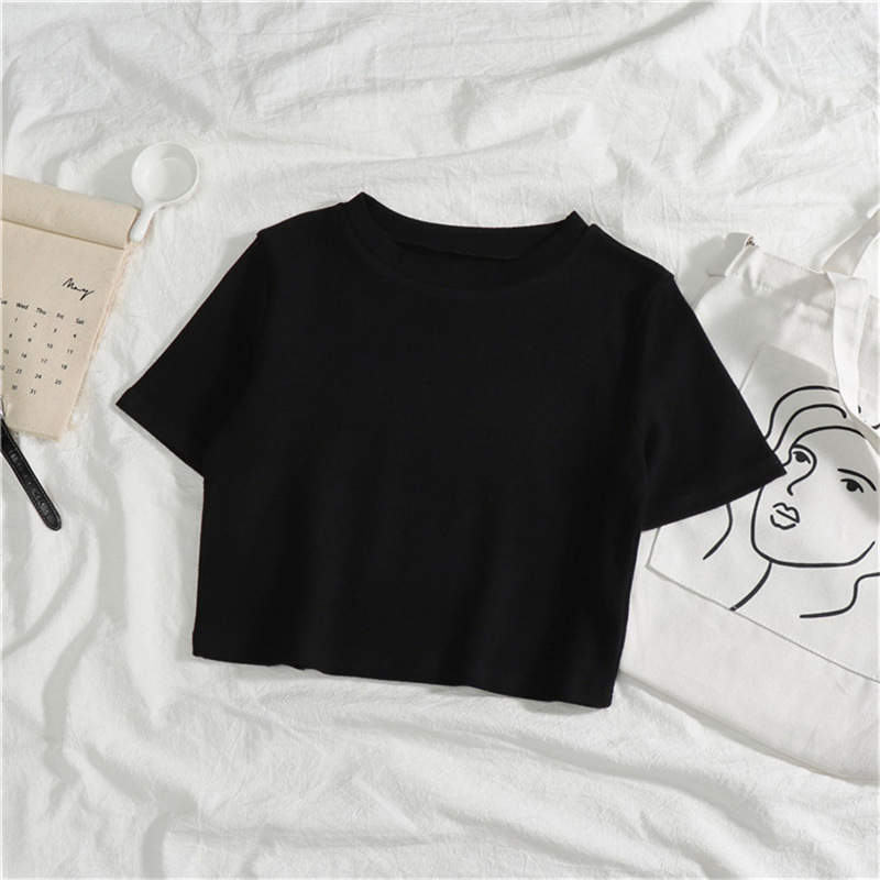 반팔 티셔츠 여성용 짧은 단색 슬림핏 배꼽 노출 타이트 디자인 센스 하이 웨이스트 bm 틈새 트렌디 한 탑 의류의 핫 걸스스토어 가기