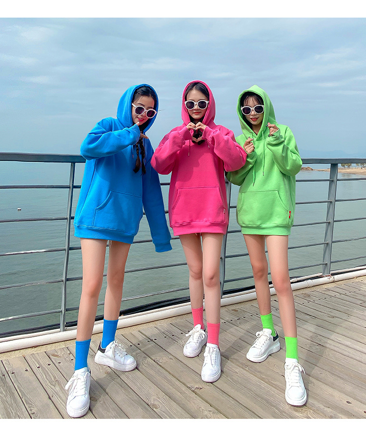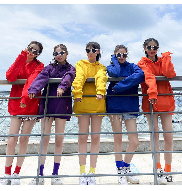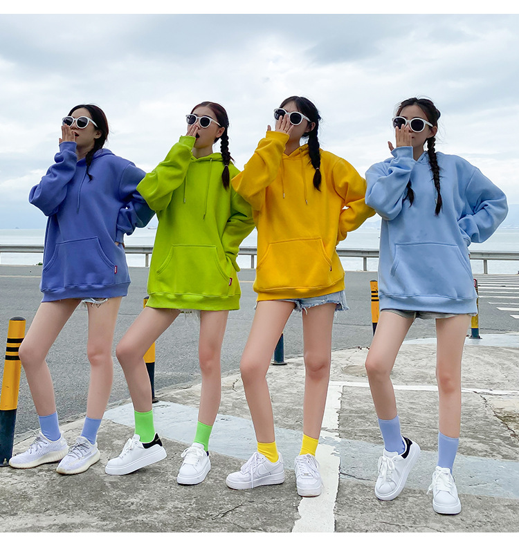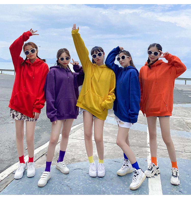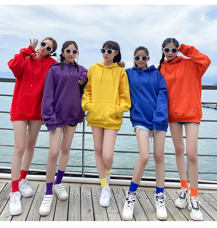 캔디 컬러 자매 커플 느슨한 후드 단색 스웨터 여자의 수업 옷 여자 친구 옷 그룹 여행 사진 재킷스토어 가기