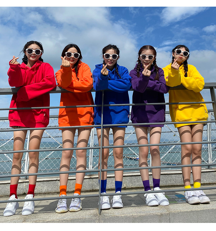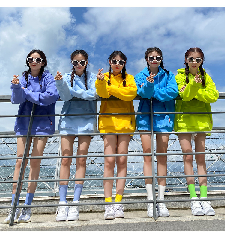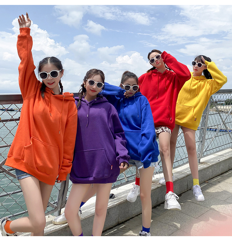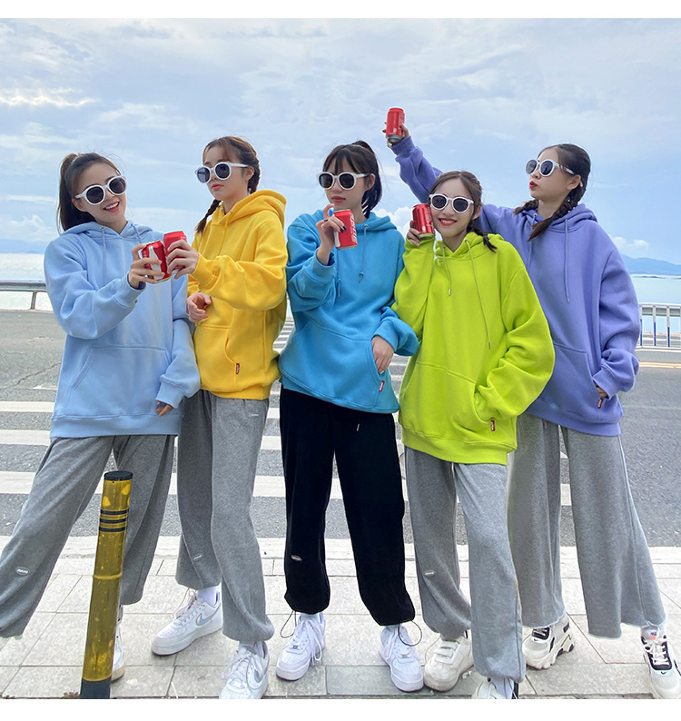 캔디 컬러 자매 커플 느슨한 후드 단색 스웨터 여자의 수업 옷 여자 친구 옷 그룹 여행 사진 재킷